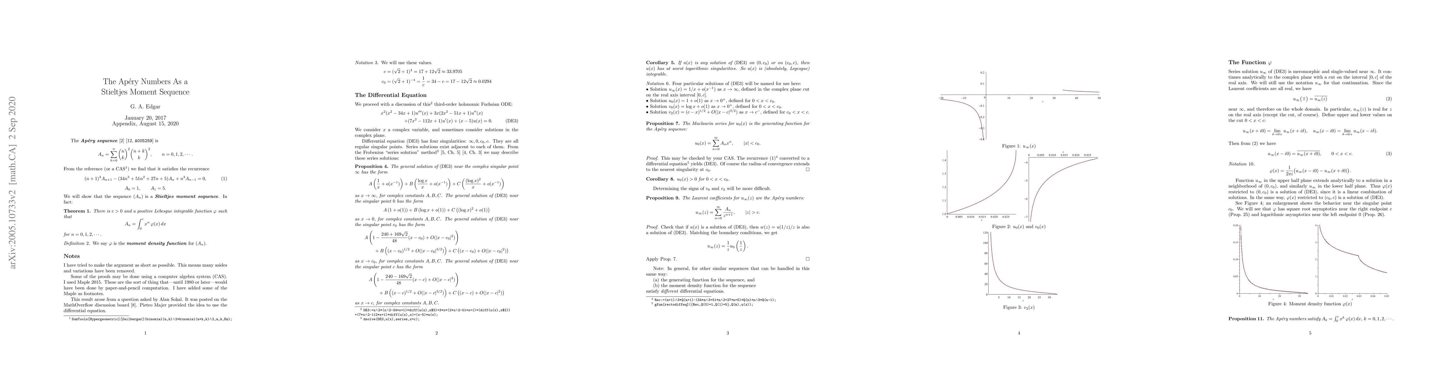 The sequence of Ap\'ery numbers is the moment sequence in the sense of Stieltjes. This is the short version of the proof. Appendix added for v.2