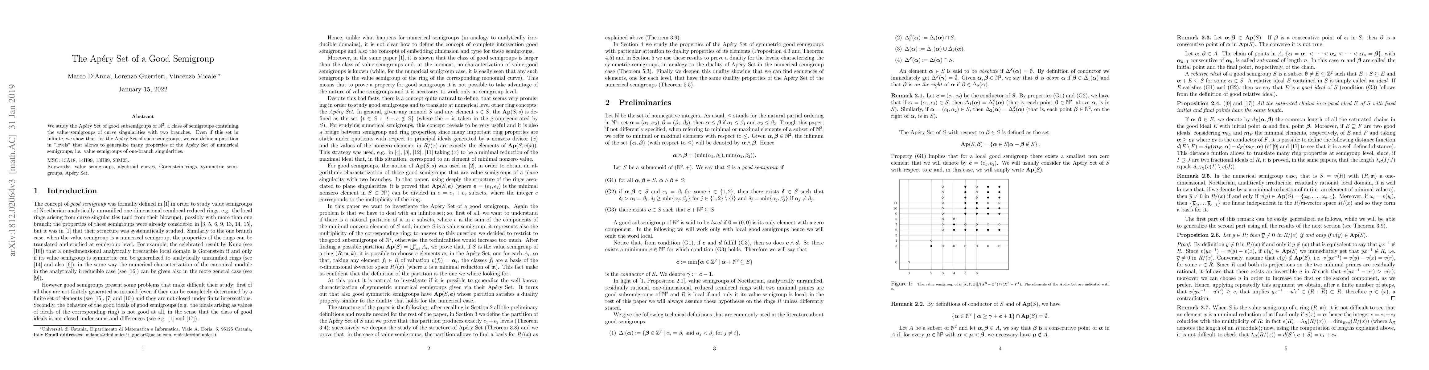 The paper introduces a method to partition the Apéry set of good semigroups into 'levels' and proves several lemmas and theorems that generalize properties of numerical semigroups to this broader class.