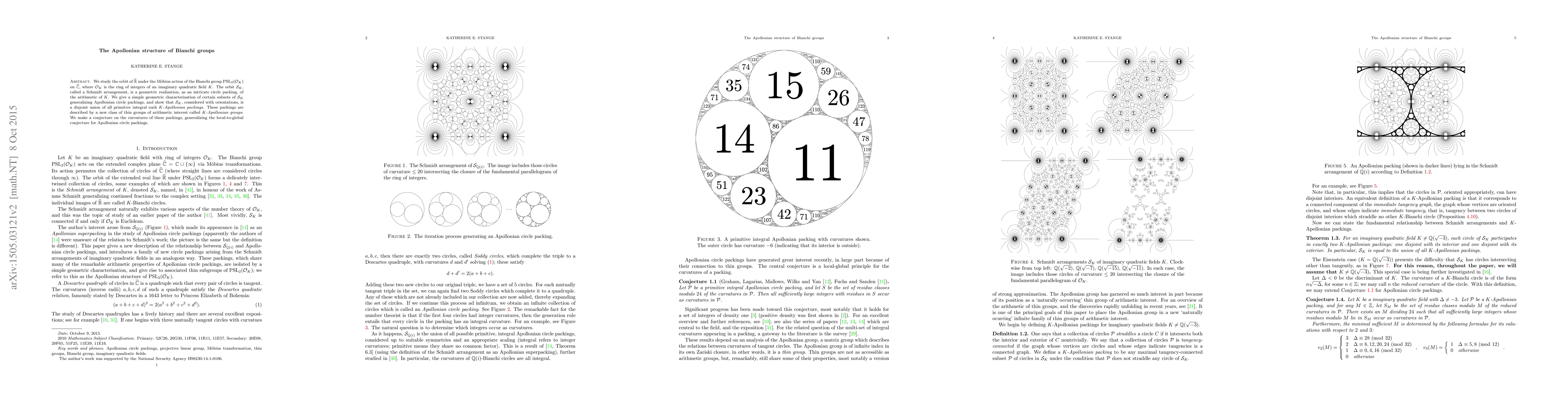 This paper explores the geometric realization of the arithmetic of imaginary quadratic fields through the orbit of $\widehat{\mathbb{R}}$ under the M\"obius action of Bianchi groups, revealing intricate circle packings known as Schmidt arrangements. It characterizes these packings as $K$-Apollonian groups and conjectures on their curvatures, extending the local-to-global conjecture for Apollonian circle packings.