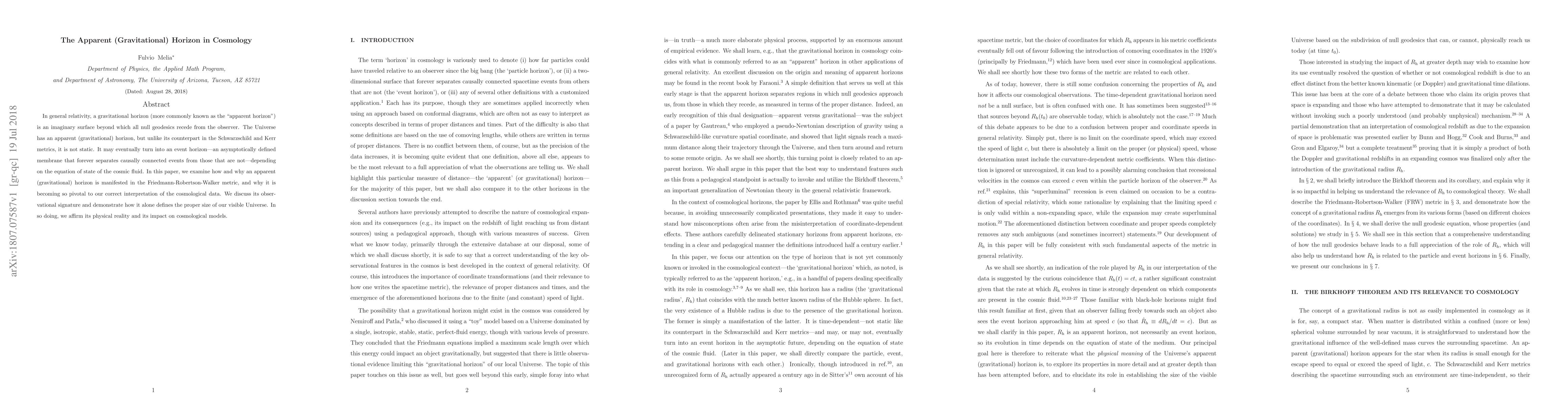 This paper explores the concept of the apparent horizon in cosmology, explaining its role in the Friedmann-Robertson-Walker metric and its potential to evolve into an event horizon based on the cosmic fluid's equation of state. It highlights its significance in interpreting cosmological data and determining the size of our visible Universe.