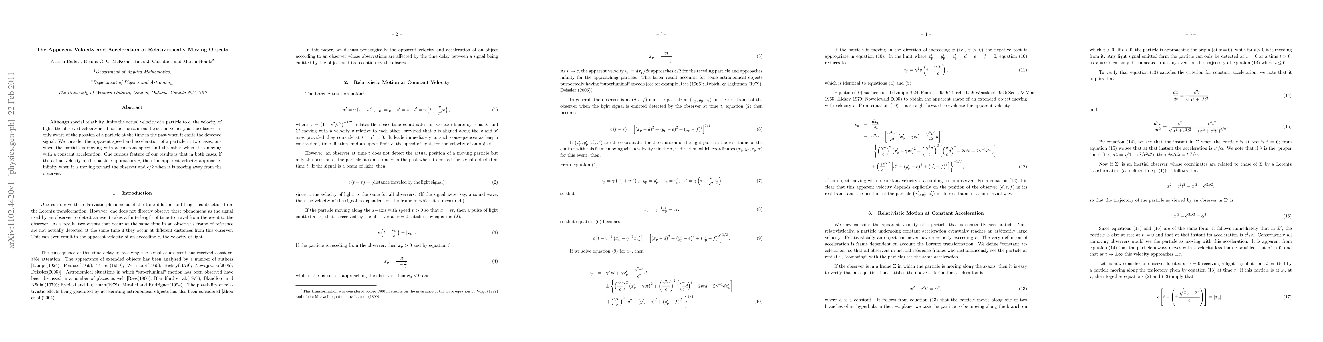 Although special relativity limits the actual velocity of a particle to $c$, the velocity of light, the observed velocity need not be the same as the actual velocity as the observer is only aware of the position of a particle at the time in the past when it emits the detected signal. We consider the apparent speed and acceleration of a particle in two cases, one when the particle is moving with a constant speed and the other when it is moving with a constant acceleration. One curious feature of our results is that in both cases, if the actual velocity of the particle approaches $c$, then the apparent velocity approaches infinity when it is moving toward the observer and $c/2$ when it is moving away from the observer.