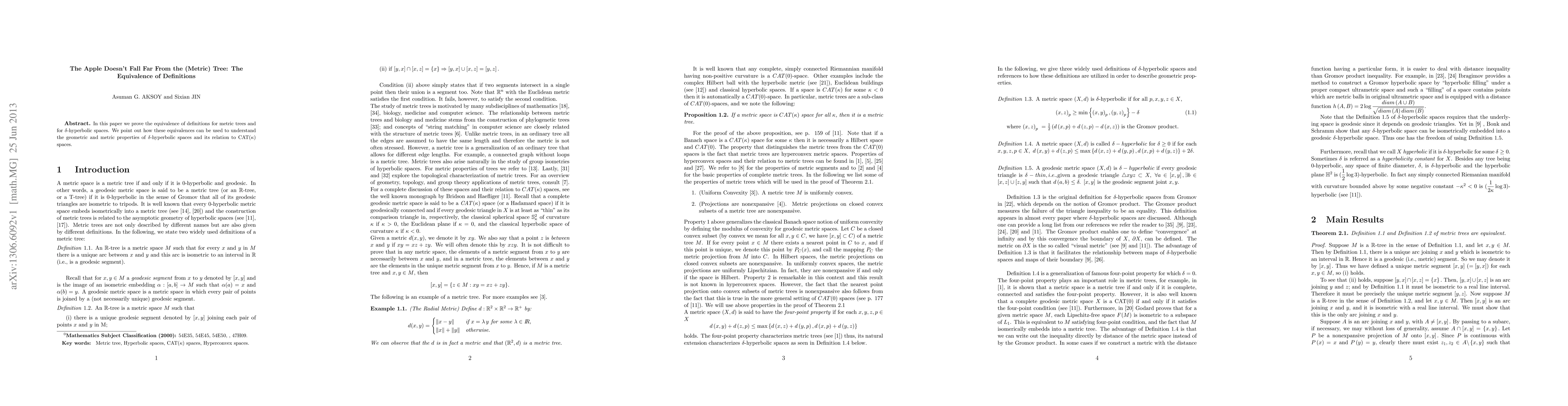 Researchers prove that metric trees and θ-hyperbolic spaces have equivalent definitions, offering insights into their geometric properties and relation to CAT(λ) spaces.