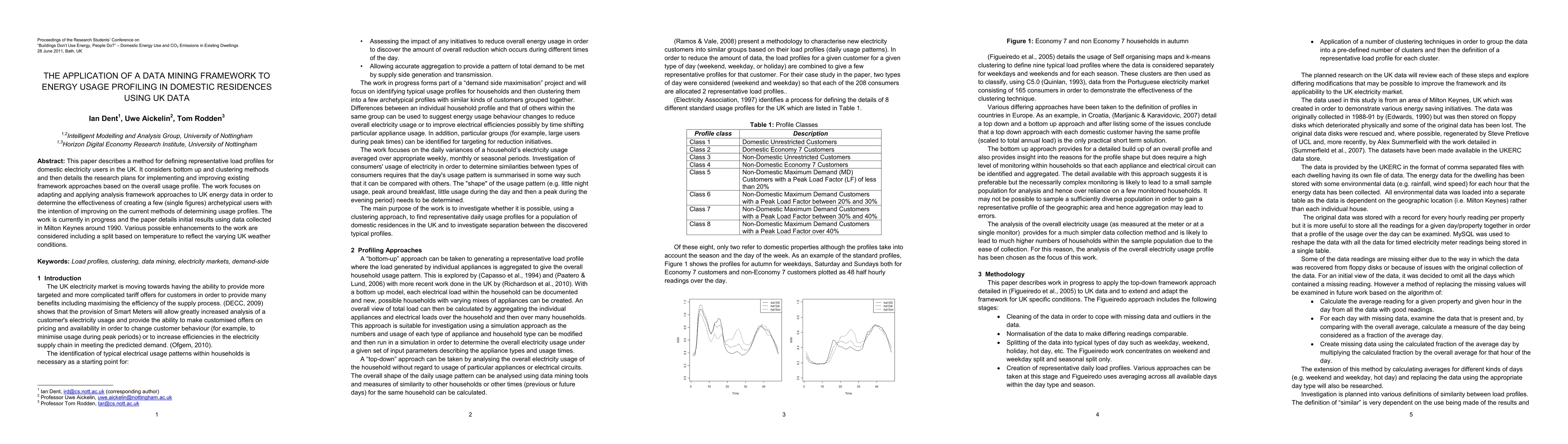 This paper proposes a data mining framework to create representative load profiles for UK domestic electricity users, focusing on clustering methods and initial results from Milton Keynes data. Future enhancements may include temperature-based splits to better reflect regional weather variations.