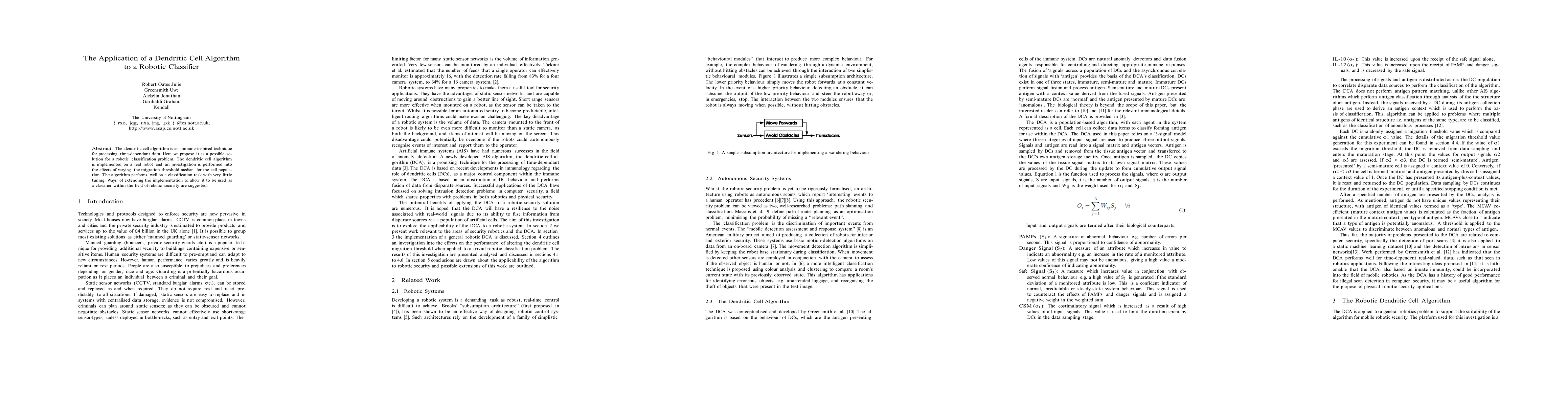 This paper explores the dendritic cell algorithm, an immune-inspired method for processing time-dependent data, as a solution for robotic classification tasks. The algorithm's performance is tested on a real robot, demonstrating effective classification with minimal tuning, and potential applications in robotic security are proposed.