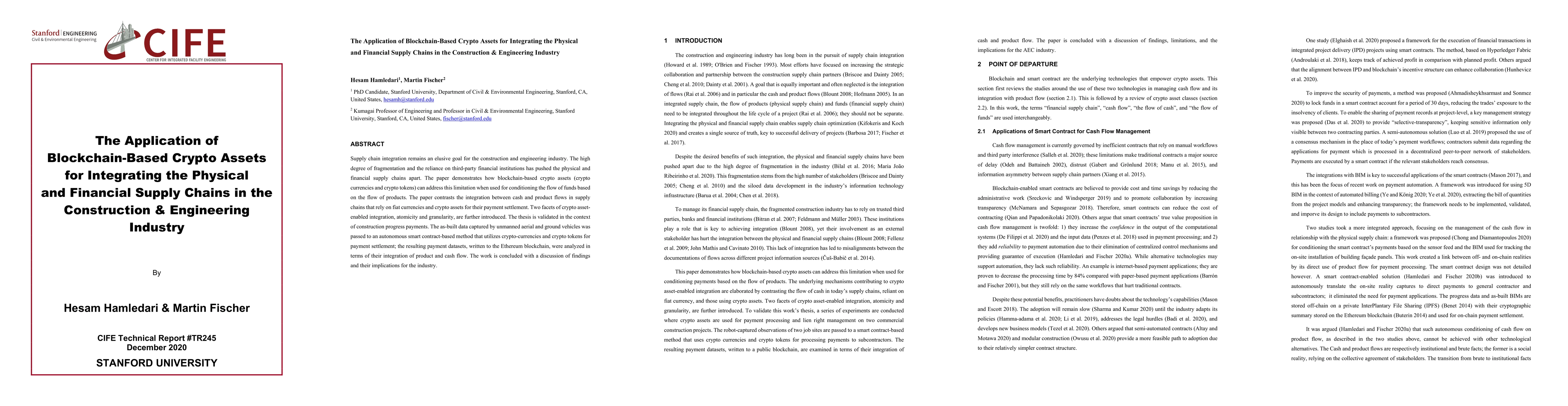 This paper explores the use of blockchain-based crypto assets to integrate the physical and financial supply chains in construction and engineering, demonstrating how they can synchronize cash and product flows. The study validates the concept through a case of construction progress payments using Ethereum blockchain, highlighting the benefits of atomicity and granularity in crypto asset-enabled integration.