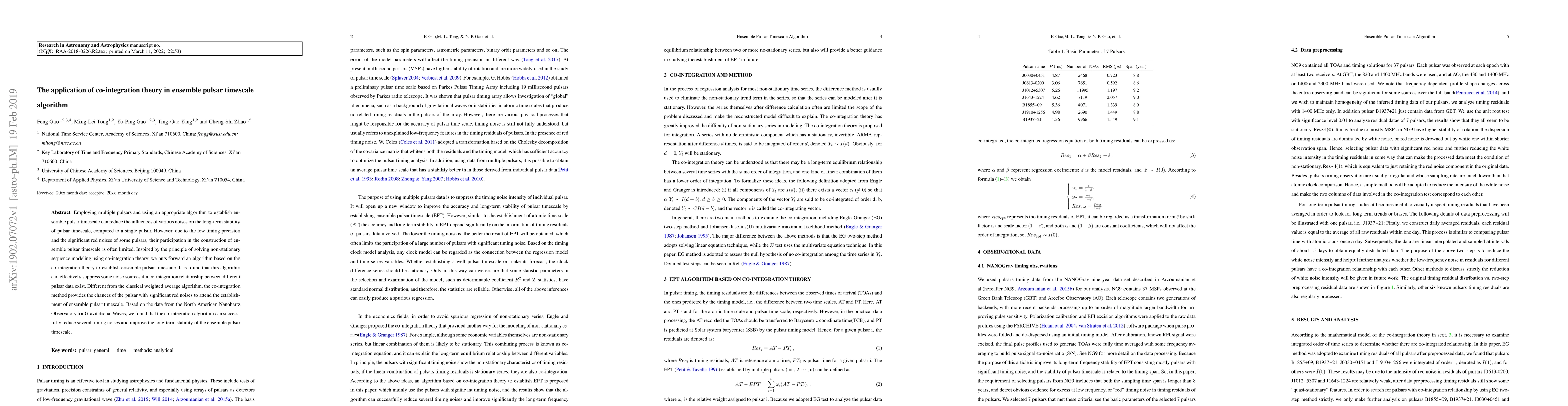 Employing multiple pulsars and using an appropriate algorithm to establish ensemble pulsar timescale can reduce the influences of various noises on the long-term stability of pulsar timescale, compared to a single pulsar. However, due to the low timing precision and the significant red noises of some pulsars, their participation in the construction of ensemble pulsar timescale is often limited. Inspired by the principle of solving non-stationary sequence modeling using co-integration theory, we puts forward an algorithm based on the co-integration theory to establish ensemble pulsar timescale. It is found that this algorithm can effectively suppress some noise sources if a co-integration relationship between different pulsar data exist. Different from the classical weighted average algorithm, the co-integration method provides the chances of the pulsar with significant red noises to attend the establishment of ensemble pulsar timescale. Based on the data from the North American Nanohertz Observatory for Gravitational Waves, we found that the co-integration algorithm can successfully reduce several timing noises and improve the long-term stability of the ensemble pulsar timescale.