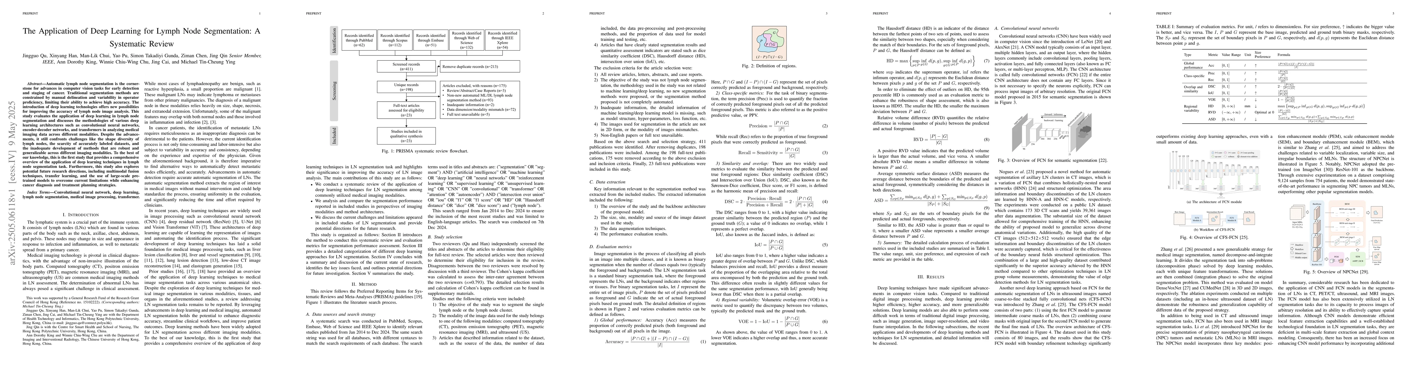 This systematic review evaluates the application of deep learning in lymph node segmentation, analyzing various architectures like CNNs, encoder-decoder networks, and transformers across different imaging modalities.