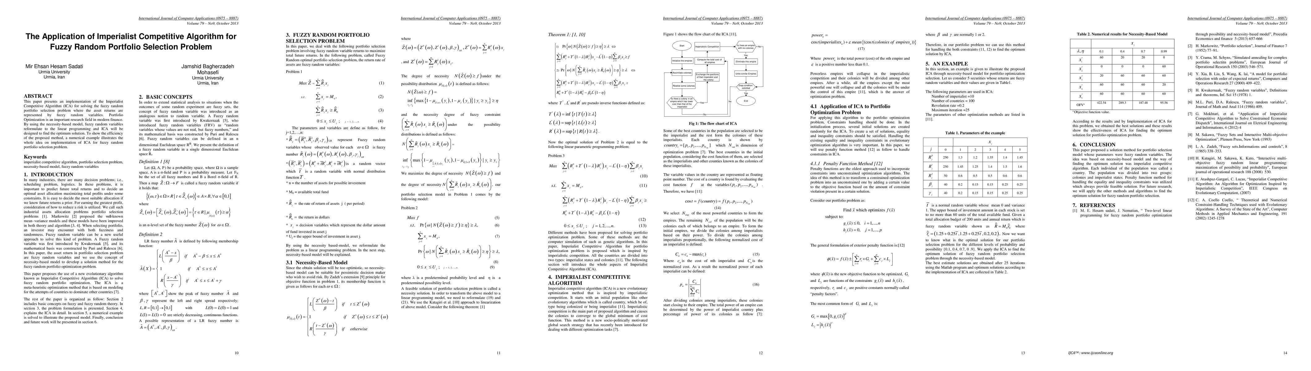 This paper implements the Imperialist Competitive Algorithm (ICA) to solve the fuzzy random portfolio selection problem, where asset returns are modeled as fuzzy random variables. The necessity-based model reformulates the problem into linear programming, and ICA is used to find the optimal portfolio solution, validated through a numerical example.
