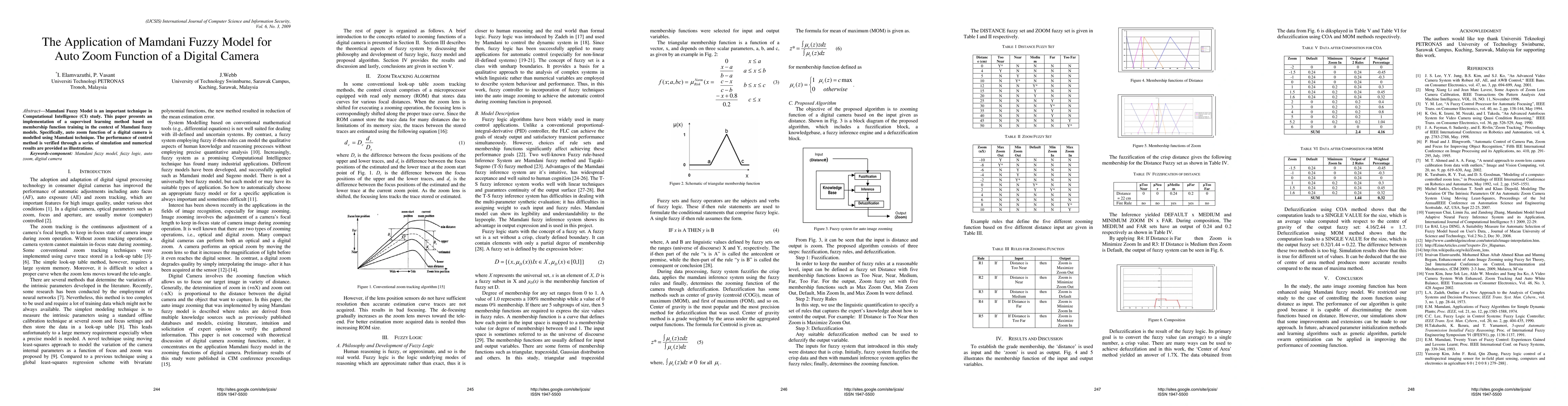 Mamdani Fuzzy Model is an important technique in Computational Intelligence (CI) study. This paper presents an implementation of a supervised learning method based on membership function training in the context of Mamdani fuzzy models. Specifically, auto zoom function of a digital camera is modelled using Mamdani technique. The performance of control method is verified through a series of simulation and numerical results are provided as illustrations.