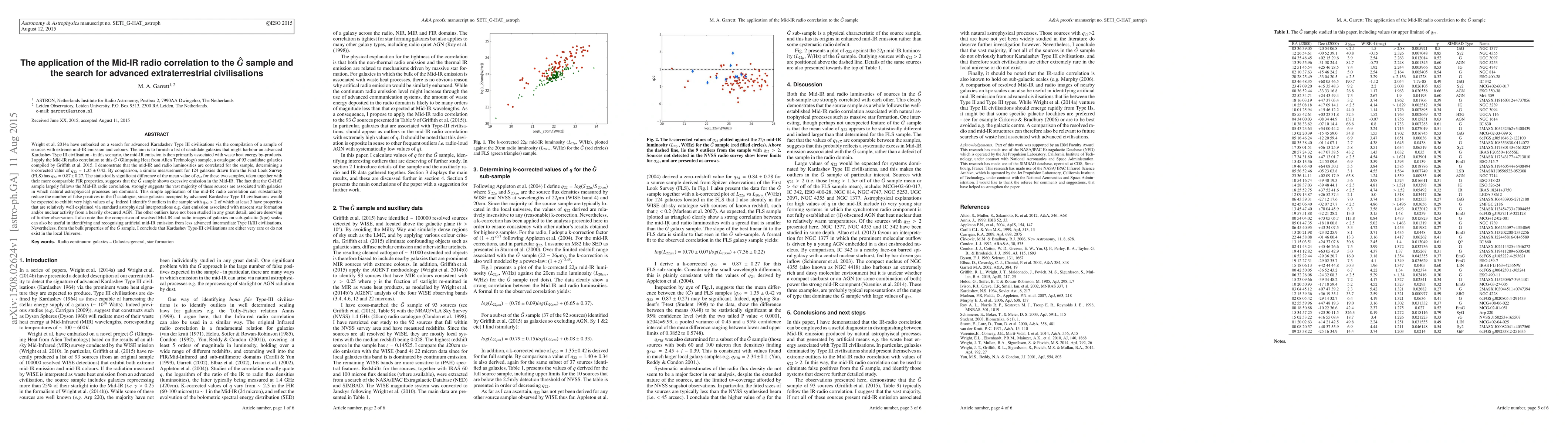 Wright et al. 2014's search for advanced extraterrestrial civilizations using a sample with extreme mid-IR emission is analyzed via the Mid-IR radio correlation. The study finds that most sources in the $\hat{G}$ sample follow the correlation, suggesting natural astrophysical processes dominate, and concludes that Kardashev Type III civilizations are likely rare or non-existent in the local Universe.