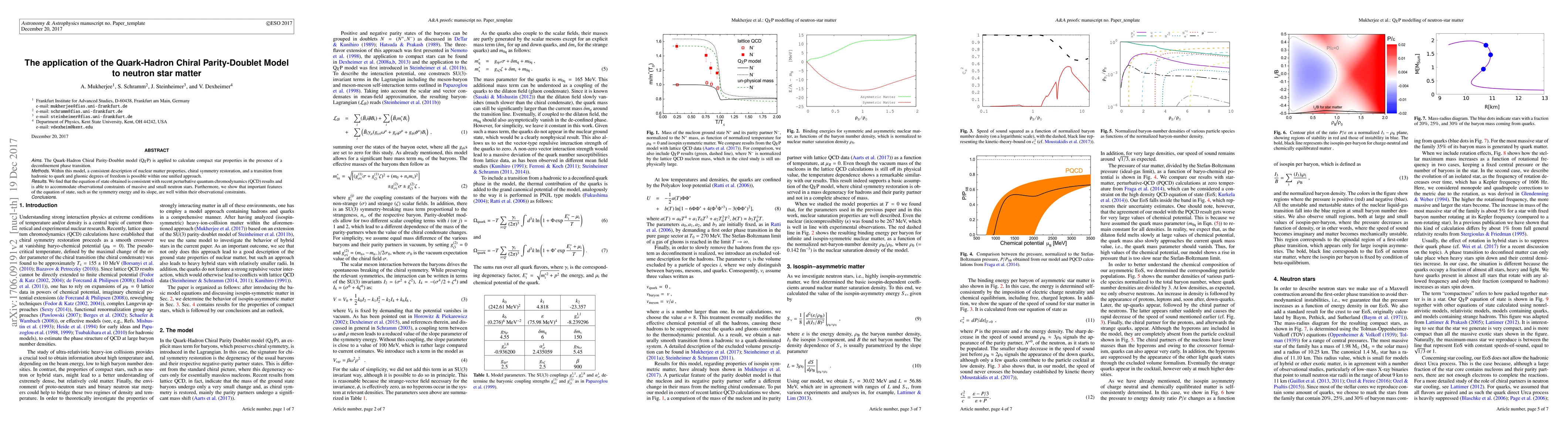 The Quark-Hadron Chiral Parity-Doublet Model (QχP) is applied to describe neutron star matter, revealing a consistent equation of state compatible with recent QCD results and observational data for both massive and small neutron stars. The model effectively captures the transition from hadronic to quark and gluonic matter.