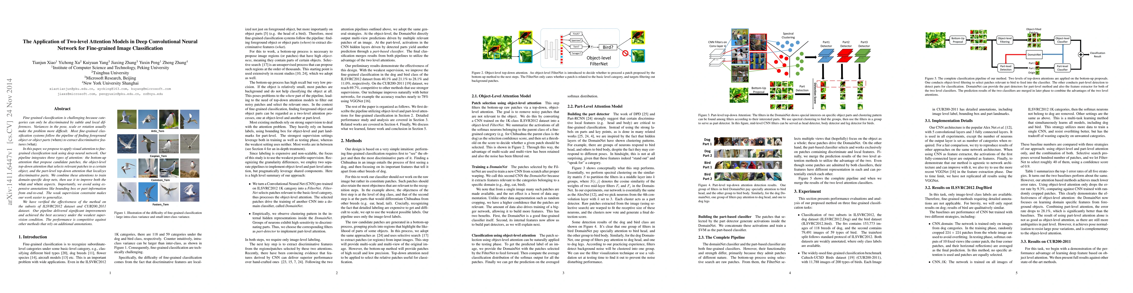 This paper proposes a two-level attention model in deep convolutional neural networks to enhance fine-grained image classification, focusing on subtle and local differences without requiring expensive annotations. The method integrates bottom-up, object-level, and part-level attentions, achieving competitive accuracy on ILSVRC2012 and CUB200_2011 datasets.