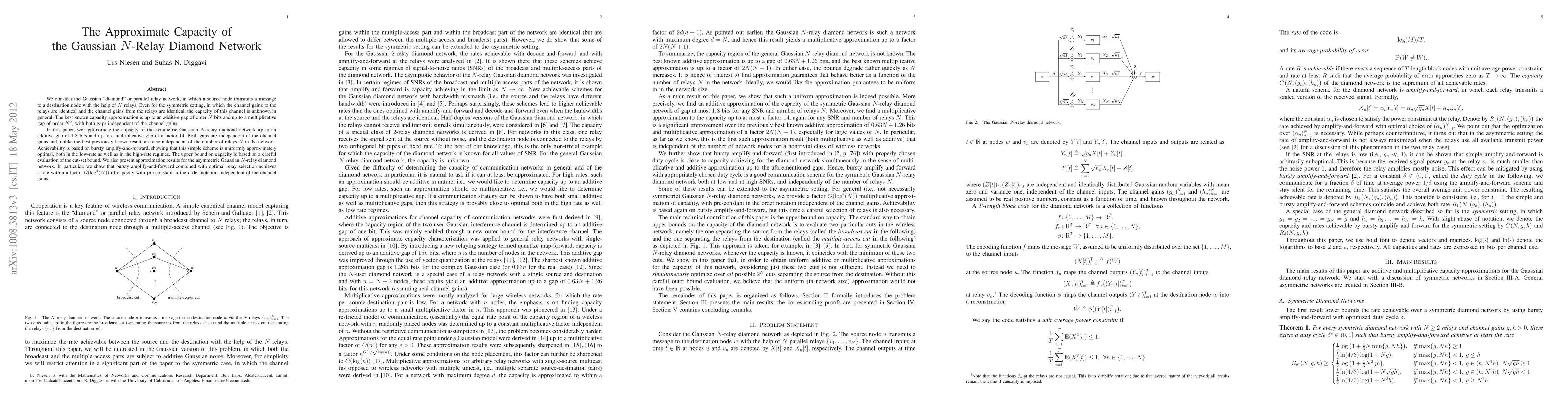 We consider the Gaussian "diamond" or parallel relay network, in which a source node transmits a message to a destination node with the help of N relays. Even for the symmetric setting, in which the channel gains to the relays are identical and the channel gains from the relays are identical, the capacity of this channel is unknown in general. The best known capacity approximation is up to an additive gap of order N bits and up to a multiplicative gap of order N^2, with both gaps independent of the channel gains. In this paper, we approximate the capacity of the symmetric Gaussian N-relay diamond network up to an additive gap of 1.8 bits and up to a multiplicative gap of a factor 14. Both gaps are independent of the channel gains and, unlike the best previously known result, are also independent of the number of relays N in the network. Achievability is based on bursty amplify-and-forward, showing that this simple scheme is uniformly approximately optimal, both in the low-rate as well as in the high-rate regimes. The upper bound on capacity is based on a careful evaluation of the cut-set bound. We also present approximation results for the asymmetric Gaussian N-relay diamond network. In particular, we show that bursty amplify-and-forward combined with optimal relay selection achieves a rate within a factor O(log^4(N)) of capacity with pre-constant in the order notation independent of the channel gains.