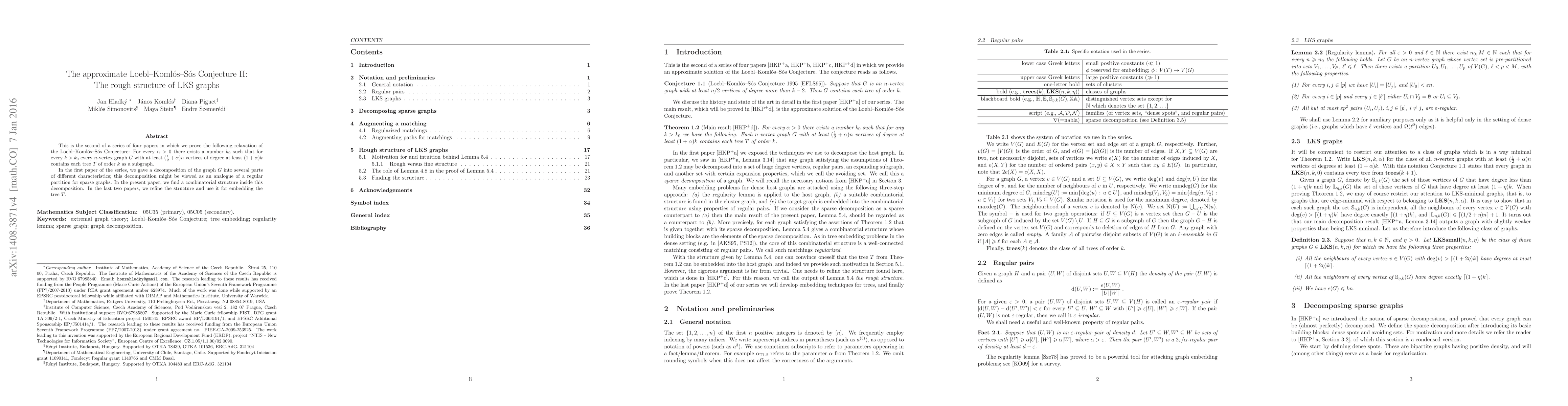 This is the second of a series of four papers in which we prove the following relaxation of the Loebl-Komlos--Sos Conjecture: For every $\alpha>0$ there exists a number $k_0$ such that for every $k>k_0$ every $n$-vertex graph $G$ with at least $(\frac12+\alpha)n$ vertices of degree at least $(1+\alpha)k$ contains each tree $T$ of order $k$ as a subgraph. In the first paper of the series, we gave a decomposition of the graph $G$ into several parts of different characteristics; this decomposition might be viewed as an analogue of a regular partition for sparse graphs. In the present paper, we find a combinatorial structure inside this decomposition. In the last two papers, we refine the structure and use it for embedding the tree $T$.