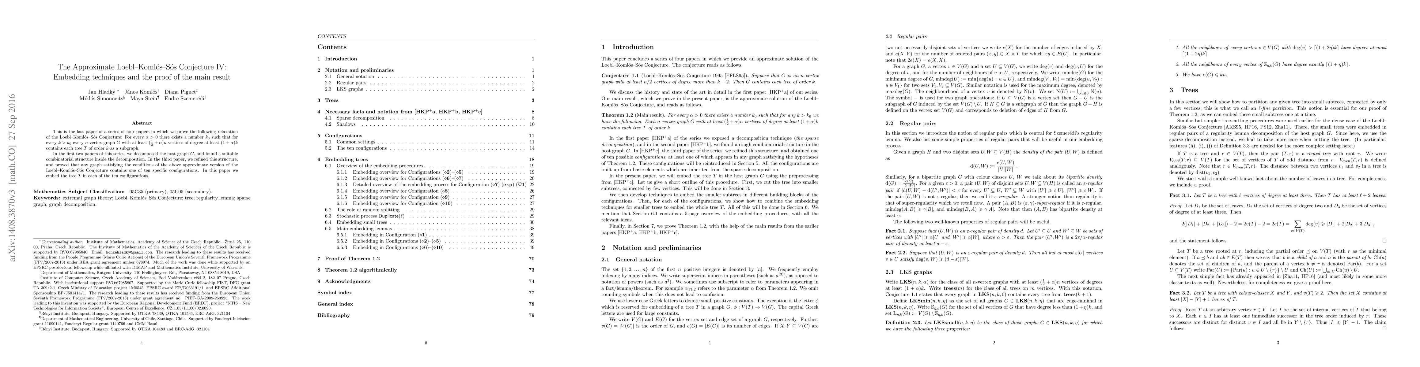 This is the last paper of a series of four papers in which we prove the following relaxation of the Loebl-Komlos-Sos Conjecture: For every $\alpha>0$ there exists a number~$k_0$ such that for every $k>k_0$ every $n$-vertex graph $G$ with at least $(\frac12+\alpha)n$ vertices of degree at least $(1+\alpha)k$ contains each tree $T$ of order $k$ as a subgraph. In the first two papers of this series, we decomposed the host graph $G$, and found a suitable combinatorial structure inside the decomposition. In the third paper, we refined this structure, and proved that any graph satisfying the conditions of the above approximate version of the Loebl-Komlos-Sos Conjecture contains one of ten specific configurations. In this paper we embed the tree $T$ in each of the ten configurations.