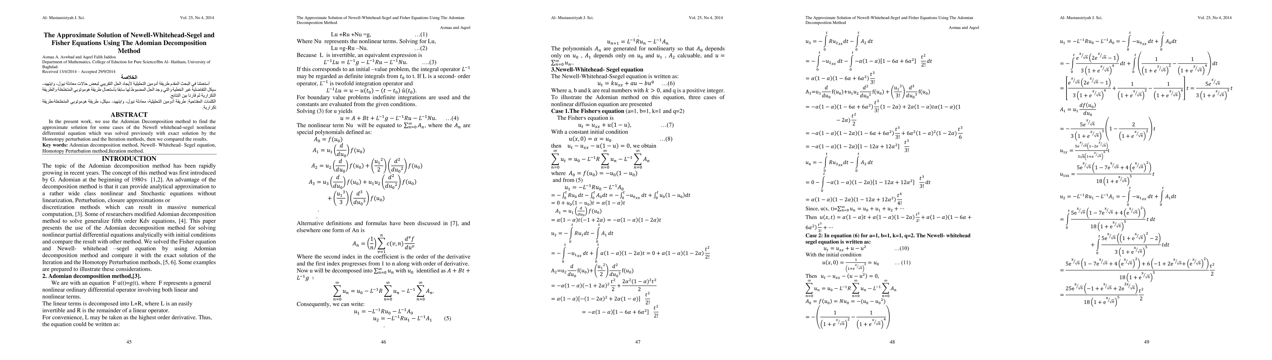 Summary: This paper employs the Adomian Decomposition method to approximate solutions for specific cases of the Newell Whitehead Segel nonlinear differential equation, comparing the results with those previously obtained through Homotopy perturbation and Iteration methods.