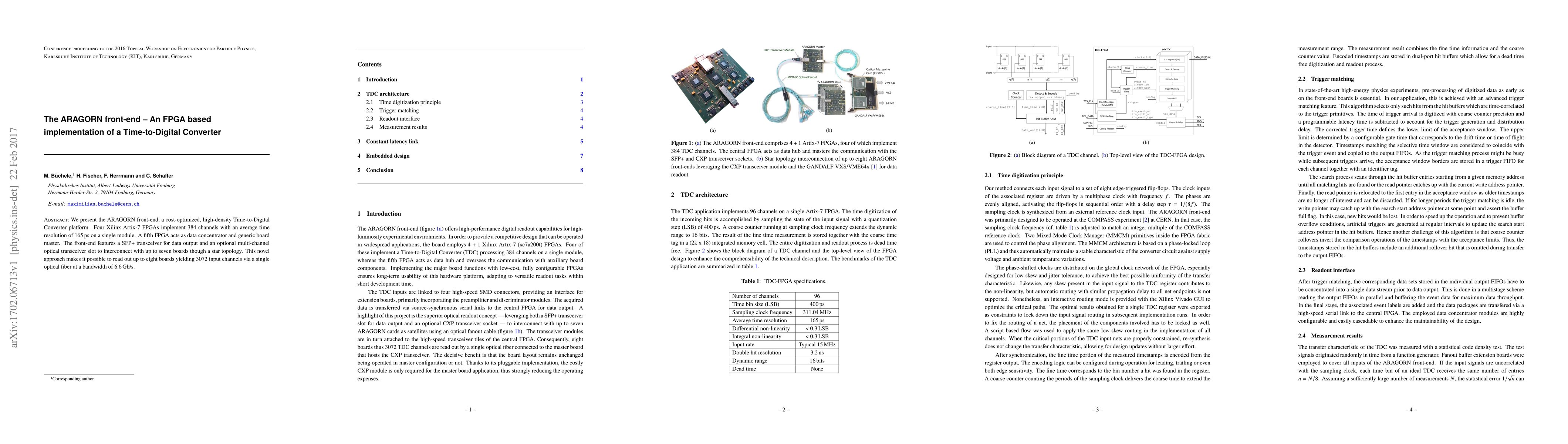 The ARAGORN front-end utilizes four Xilinx Artix-7 FPGAs to implement a high-density, cost-optimized Time-to-Digital Converter with 384 channels and 165 ps time resolution. A fifth FPGA serves as a data concentrator, enabling readout of up to 3072 channels via a single optical fiber.