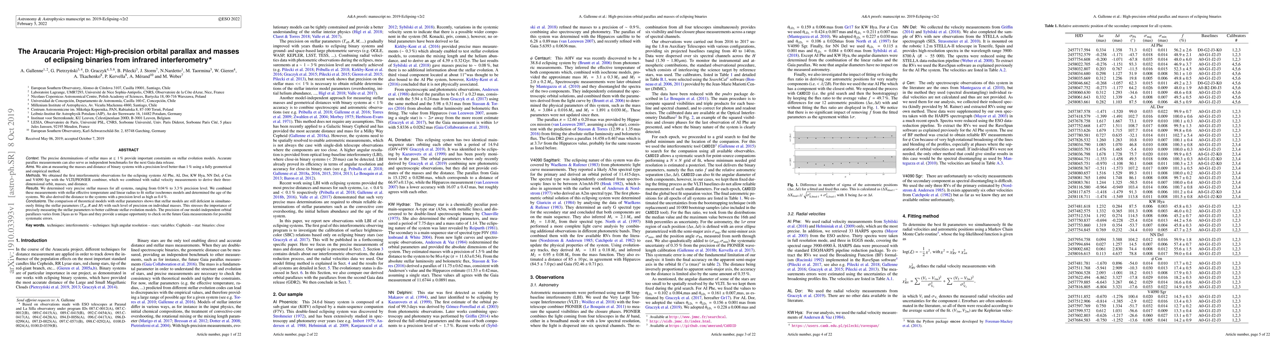 The Araucaria Project utilized infrared interferometry with the VLTI/PIONIER combiner, combined with radial velocity measurements to determine the three-dimensional orbits, masses, and distances of eclipsing binary systems AI Phe, AL Dor, KW Hya, NN Del, ψ Cen, and V4090 Sgr with high precision.