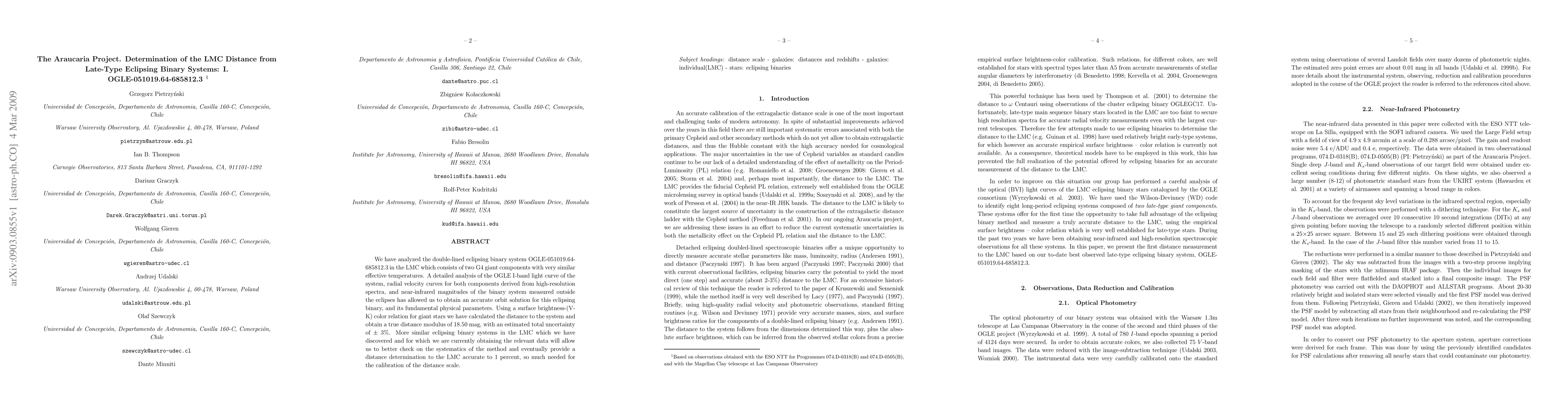 The Araucaria Project analyzes the eclipsing binary system OGLE-051019.64-685812.3 in the Large Magellanic Cloud (LMC), deriving an accurate orbit and physical parameters. The study determines a true distance modulus of 18.50 mag with ~3% uncertainty, aiming for a 1% LMC distance determination to calibrate the cosmic distance scale.