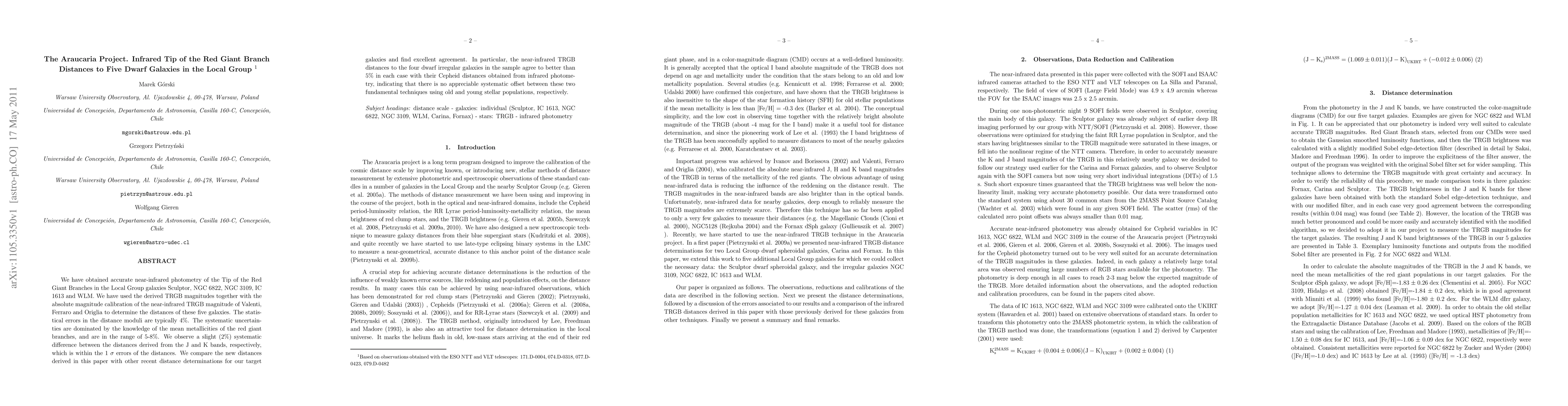 The Araucaria Project measures accurate distances to five Local Group dwarf galaxies using near-infrared TRGB photometry, achieving typically 4% statistical errors and 5-8% systematic uncertainties. The results show excellent agreement with other recent distance determinations, particularly Cepheid distances.