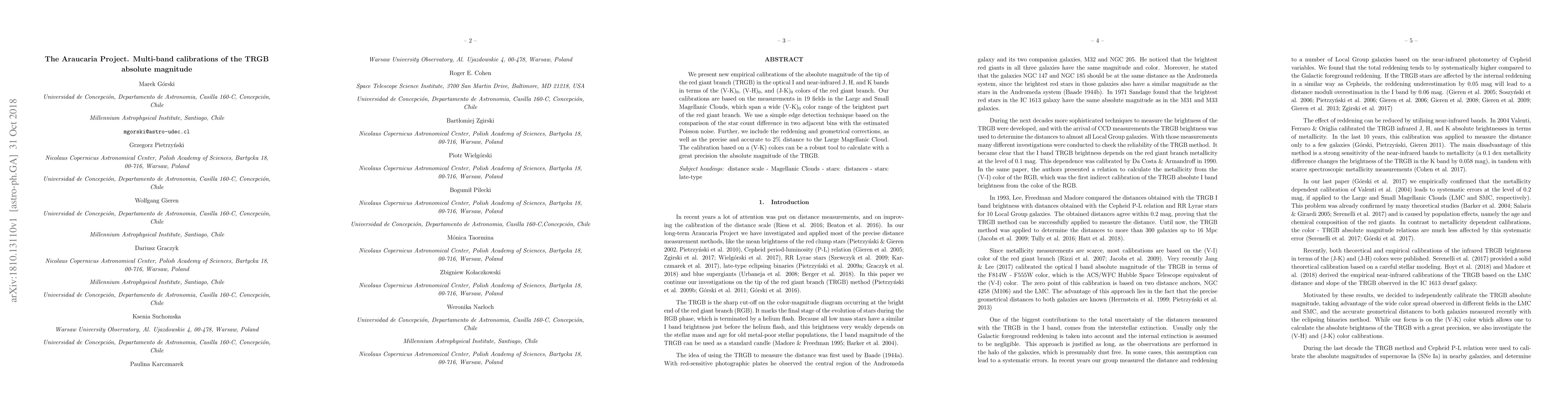 This paper presents new calibrations of the tip of the red giant branch in optical and near-infrared bands, providing a robust tool for precise absolute magnitude calculations.