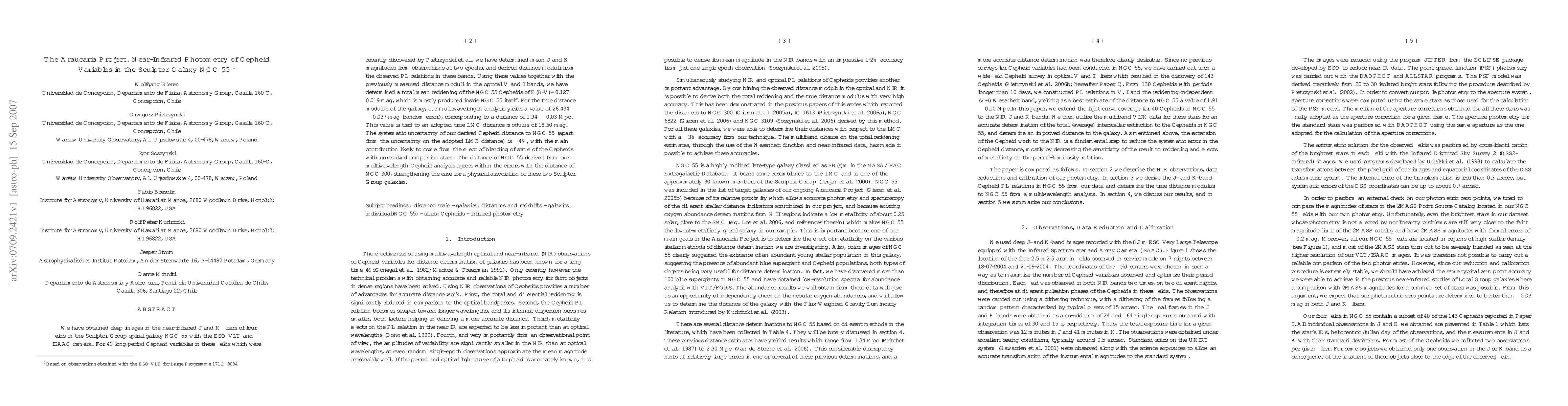 The Araucaria Project measures the distance to NGC 55 using near-infrared Cepheid variables, finding a distance of 1.94 ± 0.03 Mpc, which agrees with the distance to NGC 300, supporting their physical association. The study also determines a total reddening of E(B-V) = 0.127 ± 0.019 mag for the Cepheids.
