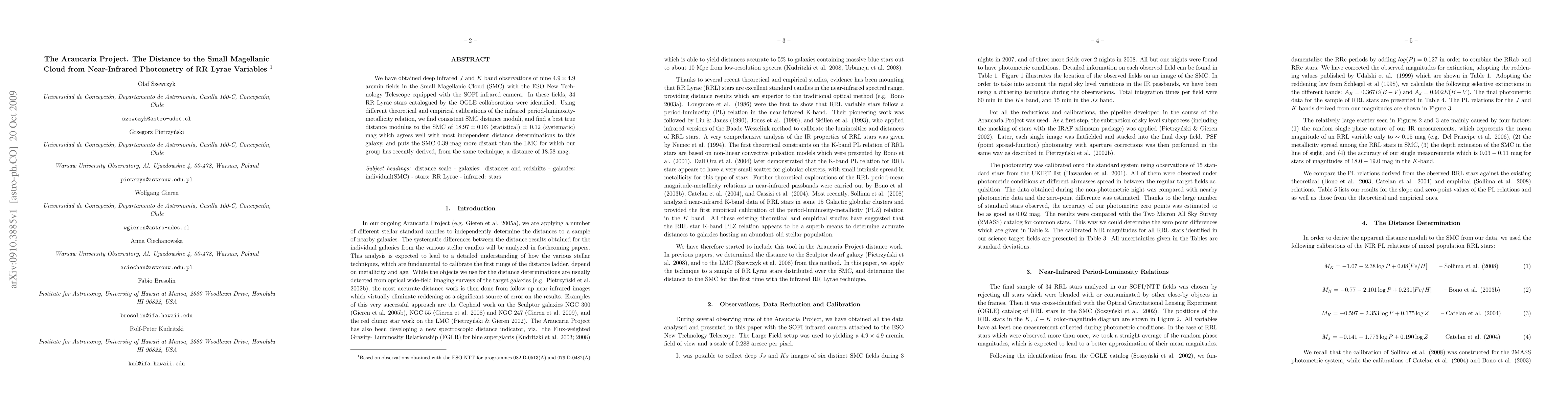 The Araucaria Project measures the distance to the Small Magellanic Cloud (SMC) using near-infrared photometry of RR Lyrae variables, finding a distance modulus of 18.97 ± 0.03 (statistical) ± 0.12 (systematic) mag, which places the SMC 0.39 mag more distant than the Large Magellanic Cloud (LMC).