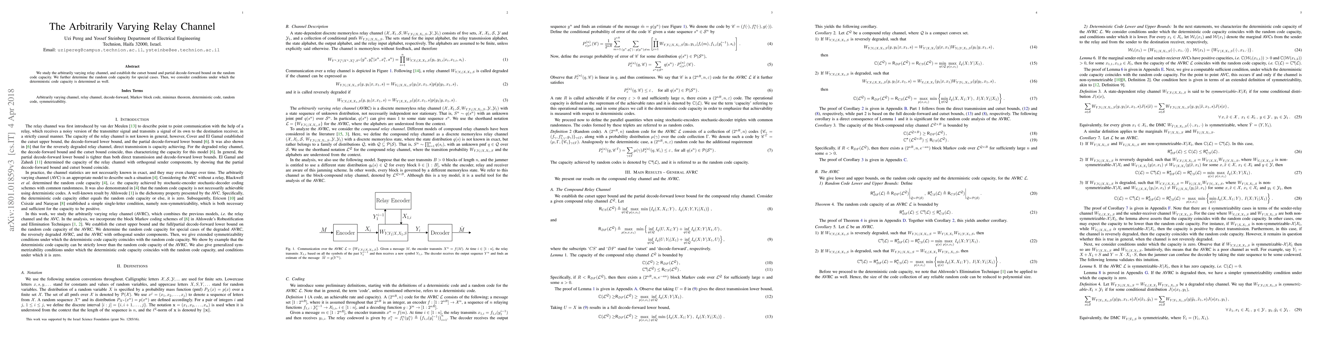Researchers studied the arbitrarily varying relay channel, establishing bounds on its random code capacity and determining special cases where deterministic capacity applies.