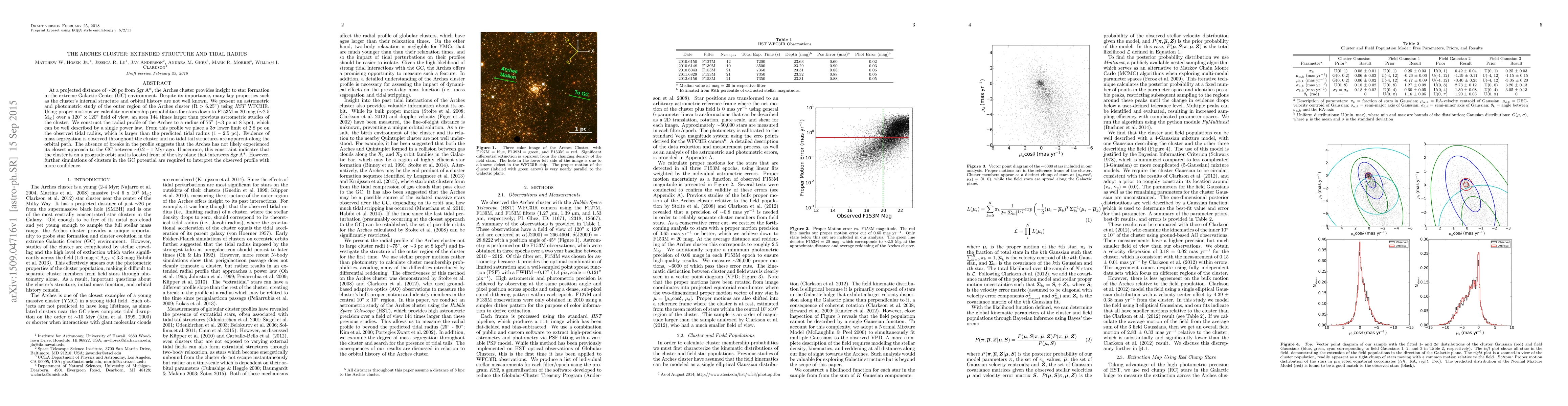 This study uses HST WFC3IR to analyze the extended structure of the Arches cluster, revealing a radial profile described by a single power law and a 3-sigma lower limit tidal radius of 2.8 pc. The findings suggest the cluster has not experienced its closest approach to the Galactic Center in the last 0.2-1 Myr, indicating a prograde orbit.