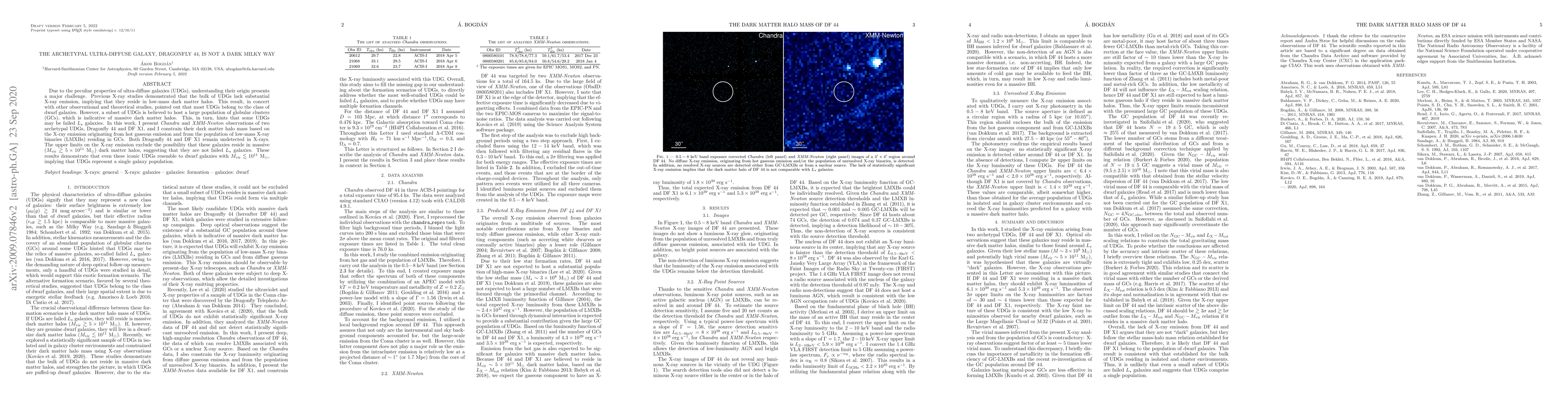 Two ultra-diffuse galaxies, Dragonfly 44 and DF X1, have been studied using Chandra and XMM-Newton observations, finding that they do not host massive dark matter halos, contradicting previous theories that some UDGs may be failed $L_{ m ullet}$ galaxies.