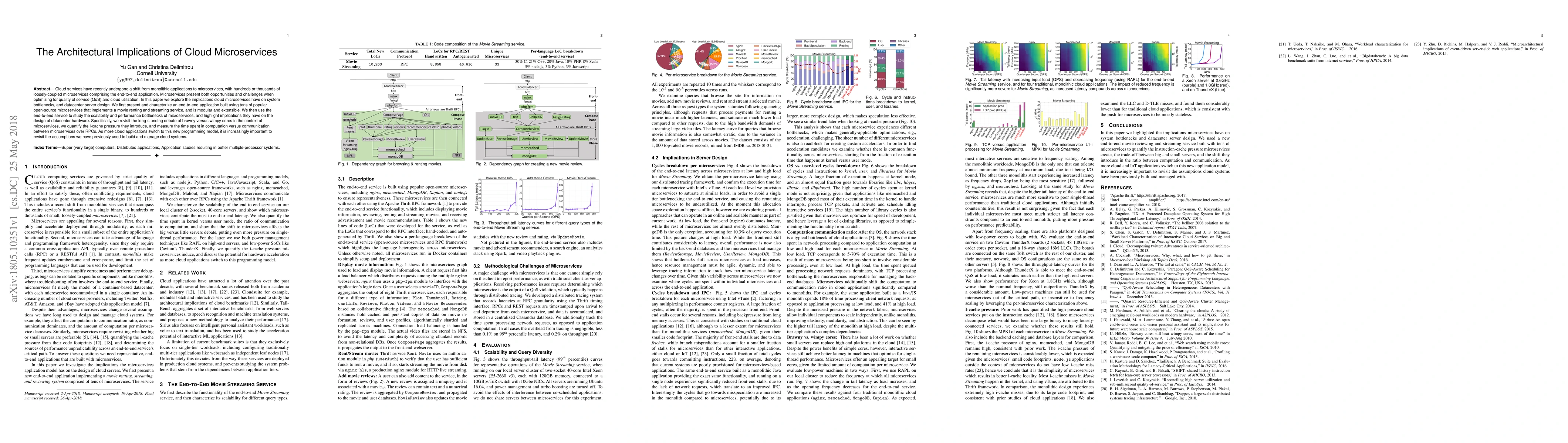 This paper investigates the architectural challenges posed by microservices in cloud environments, focusing on scalability, performance, and datacenter hardware design. It examines bottlenecks in a modular movie renting service built with open-source microservices, highlighting implications for server architecture and resource allocation.