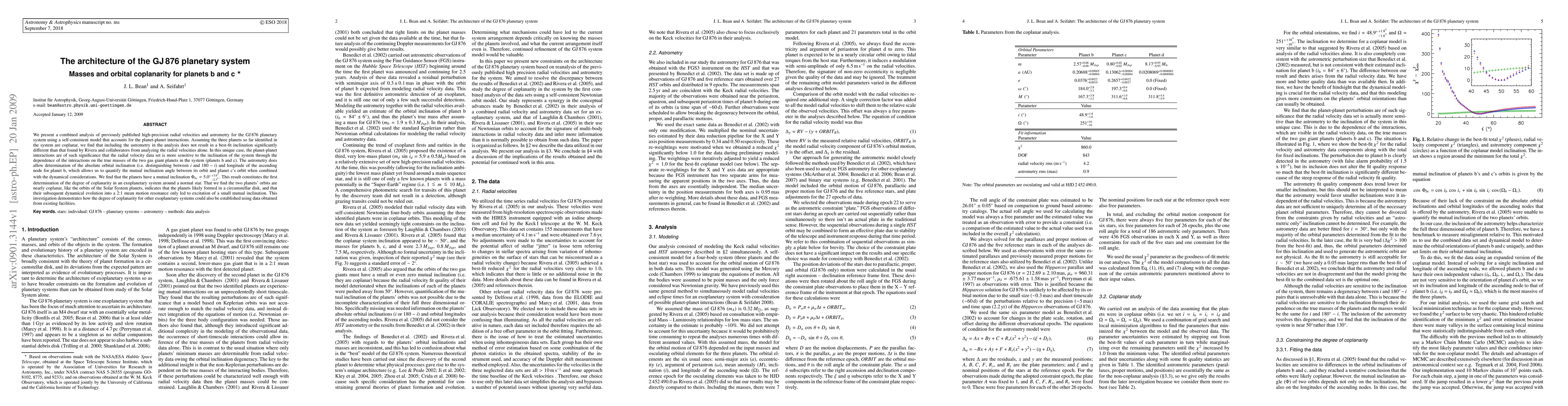 This study combines radial velocity and astrometry data to analyze the GJ876 planetary system, revealing that planets b and c are nearly coplanar with a mutual inclination of 5.0 ± 3.9 degrees. This finding suggests the planets likely formed in a circumstellar disk and that their evolution into a resonant state minimally disturbed their coplanarity.