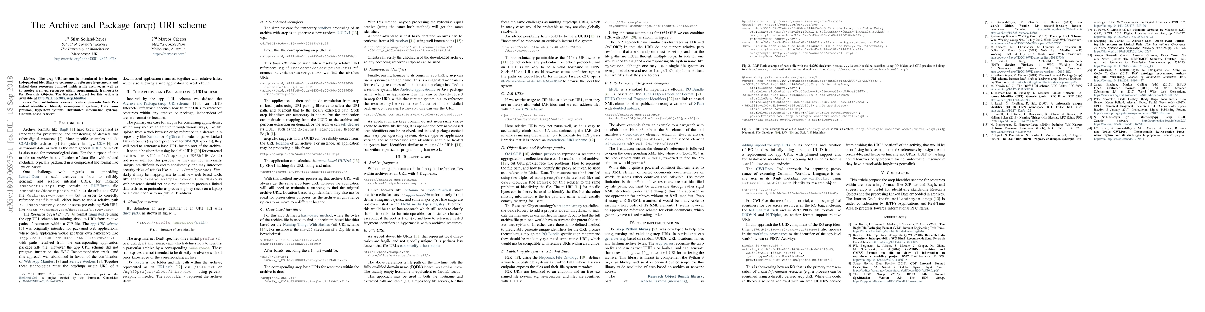 The arcp URI scheme is introduced for location-independent identifiers to consume or reference hypermedia and linked data resources bundled inside a file archive, as well as to resolve archived resources within programmatic frameworks for Research Objects. The Research Object for this article is available at http://s11.no/2018/arcp.html#ro