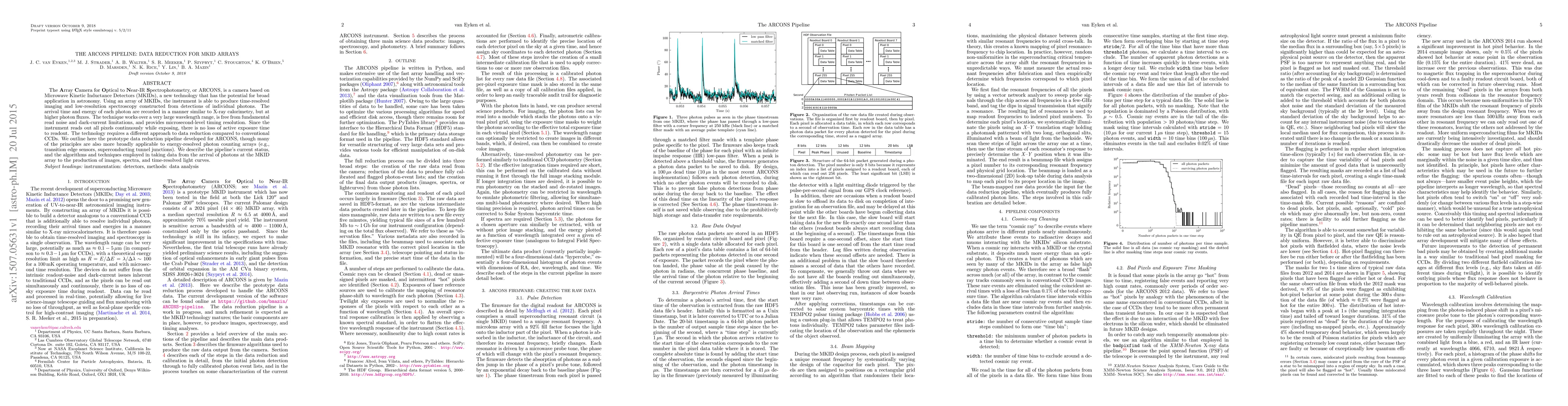 The ARCONS camera uses Microwave Kinetic Inductance Detectors (MKIDs) for time-resolved imaging and low-resolution spectroscopy, necessitating a unique data reduction pipeline. The developed prototype pipeline processes photon arrival data to produce images, spectra, and time-resolved light curves, with principles applicable to other energy-resolved photon counting arrays.