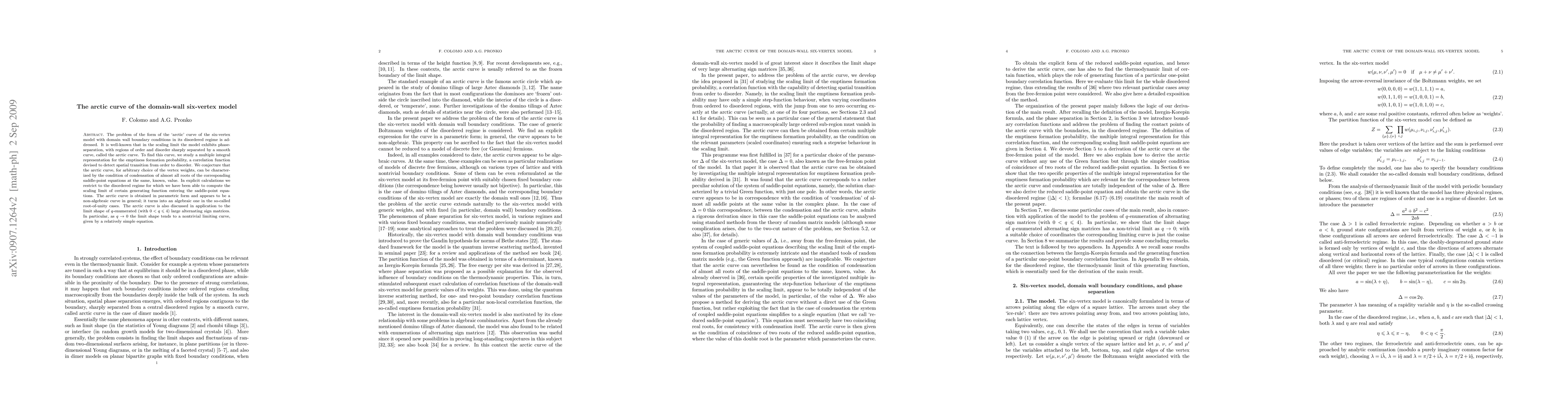 The problem of the form of the `arctic' curve of the six-vertex model with
