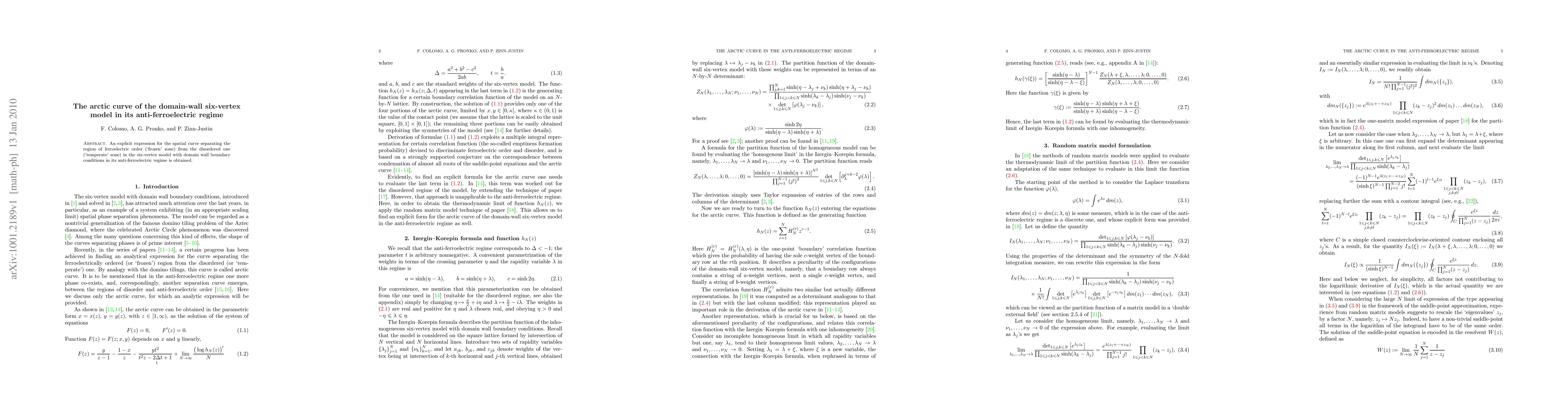 An explicit expression for the spatial curve separating the region of ferroelectric order (`frozen' zone) from the disordered one (`temperate' zone) in the six-vertex model with domain wall boundary conditions in its anti-ferroelectric regime is obtained.