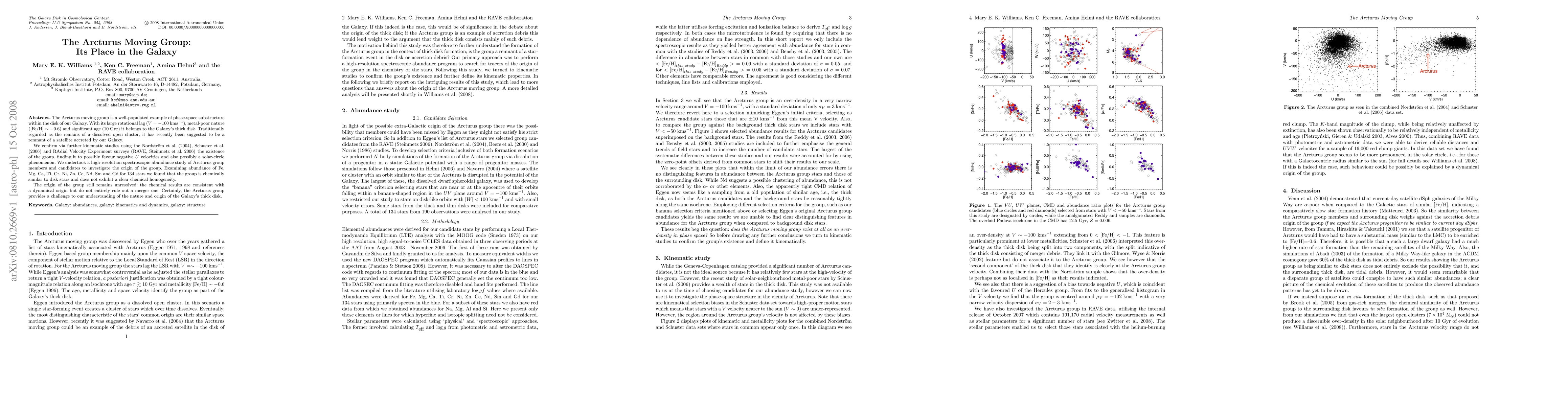The Arcturus moving group is a well-populated example of phase space substructure within the thick disk of our Galaxy. Traditionally regarded as the remains of a dissolved open cluster, it has recently been suggested to be a remnant of a satellite accreted by our Galaxy. To investigate the origin of the group we undertook a high-resolution spectroscopic abundance study of Arcturus group members and candidates. Examining abundance of Fe, Mg, Ca, Ti, Cr, Ni, Zn, Ce, Nd, Sm and Gd for 134 stars we found that the group is chemically similar to disk stars and does not exhibit a clear chemical homogeneity. Furthermore, we confirm the existence of the Arcturus group using the Nordstroem et al. (2004), Schuster et al. (2006) and RAdial Velocity Experiment (RAVE) surveys (Steinmetz et al. 2006). The origin of the group still remains unresolved: the chemical results are consistent with a dynamical origin but do not entirely rule out a merger one. Certainly, the Arcturus group provides a challenge to our understanding of the nature and origin of the Galaxy's thick disk.