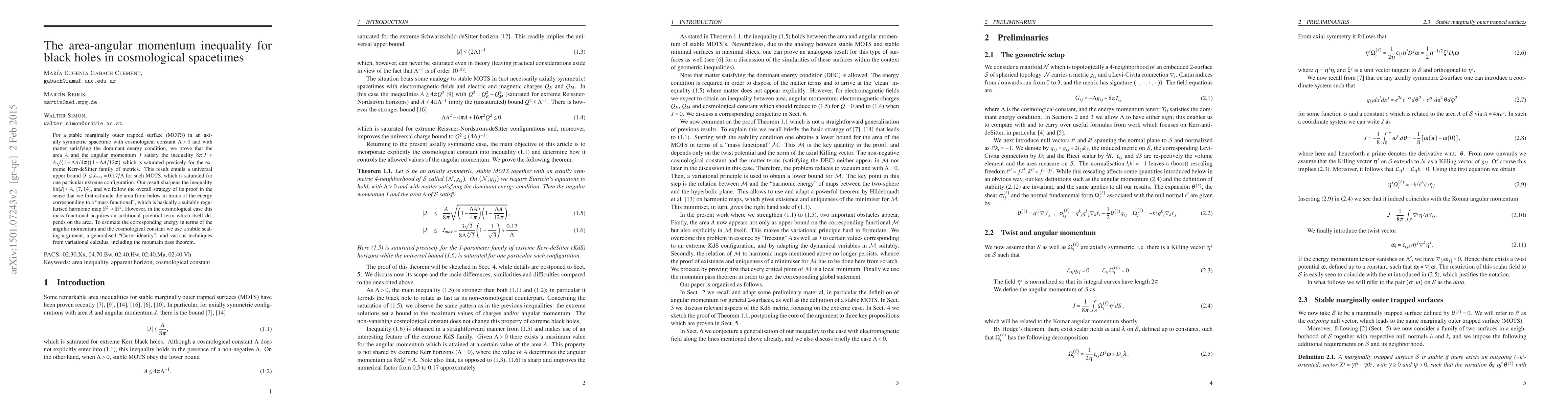 For a stable marginally outer trapped surface (MOTS) in an axially symmetric spacetime with cosmological constant $\Lambda > 0$ and with matter satisfying the dominant energy condition, we prove that the area $A$ and the angular momentum $J$ satisfy the inequality $8\pi |J| \le A\sqrt{(1-\Lambda A/4\pi)(1-\Lambda A/12\pi)}$ which is saturated precisely for the extreme Kerr-deSitter family of metrics. This result entails a universal upper bound $|J| \le J_{\max} \approx 0.17/\Lambda$ for such MOTS, which is saturated for one particular extreme configuration. Our result sharpens the inequality $8\pi |J| \le A$, [7,14] and we follow the overall strategy of its proof in the sense that we estimate the area from below in terms of the energy corresponding to a "mass functional", which is basically a suitably regularised harmonic map $\mathbb{S}^2 \rightarrow \mathbb{H}^2 $. However, in the cosmological case this mass functional acquires an additional potential term which itself depends on the area. To estimate the corresponding energy in terms of the angular momentum and the cosmological constant we use a subtle scaling argument, a generalised "Carter-identity", and various techniques from variational calculus, including the mountain pass theorem.