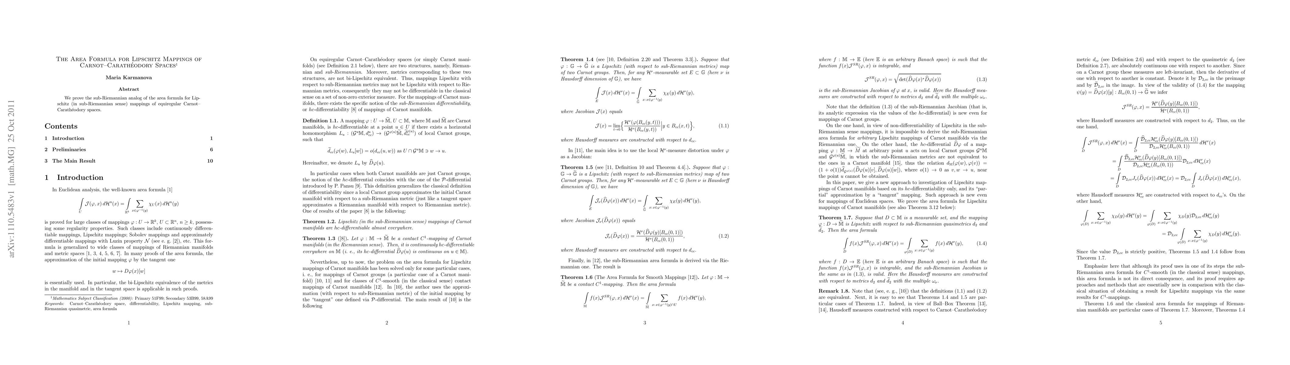 This paper establishes the sub-Riemannian area formula for Lipschitz mappings in equiregular Carnot-Carathéodory spaces, extending classical results to non-Euclidean geometries. The key focus is on the intrinsic metric properties in these spaces.