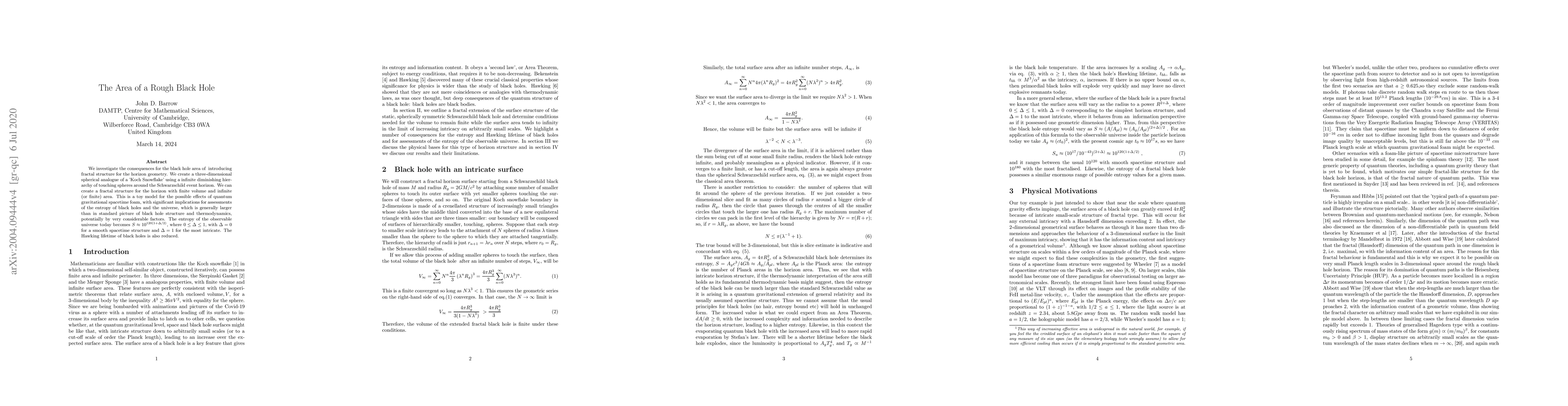 We investigate the consequences for the black hole area of introducing fractal structure for the horizon geometry. We create a three-dimensional spherical analogue of a 'Koch Snowflake' using a infinite diminishing hierarchy of touching spheres around the Schwarzschild event horizon. We can create a fractal structure for the horizon with finite volume and infinite (or finite) area. This is a toy model for the possible effects of quantum gravitational spacetime foam, with significant implications for assessments of the entropy of black holes and the universe, which is generally larger than in standard picture of black hole structure and thermodynamics, potentially by very considerable factors. The entropy of the observable universe today becomes log(S) is approximately 120(1+D/2) with D = 0 for a smooth spacetime structure and D = 1 for the most intricate. The Hawking lifetime of black holes is also reduced.