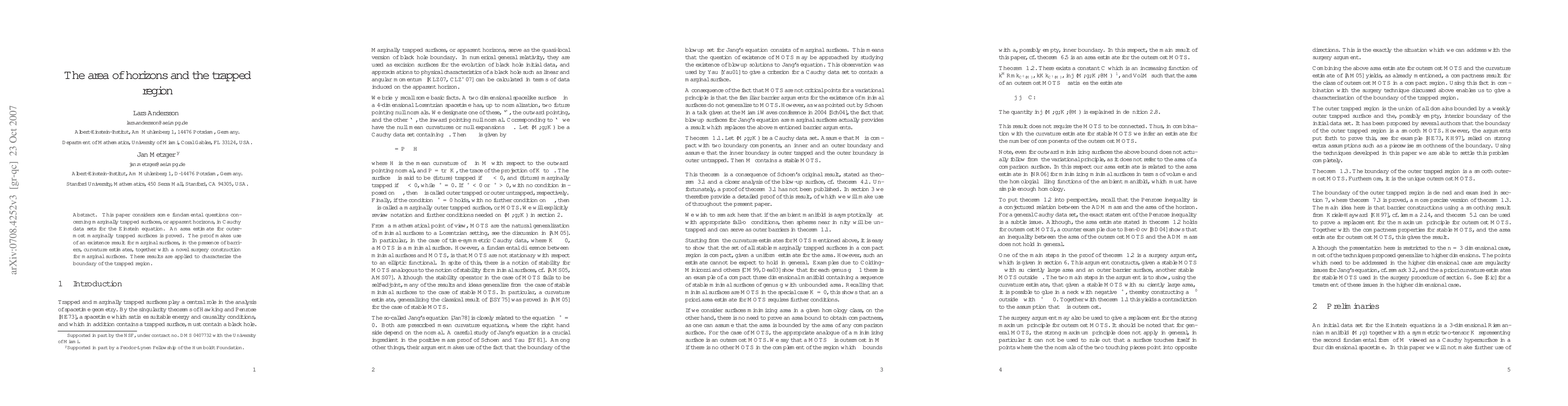 Researchers prove an area estimate for outermost marginally trapped surfaces in Einstein equation Cauchy data sets, helping to characterize the boundary of the trapped region.