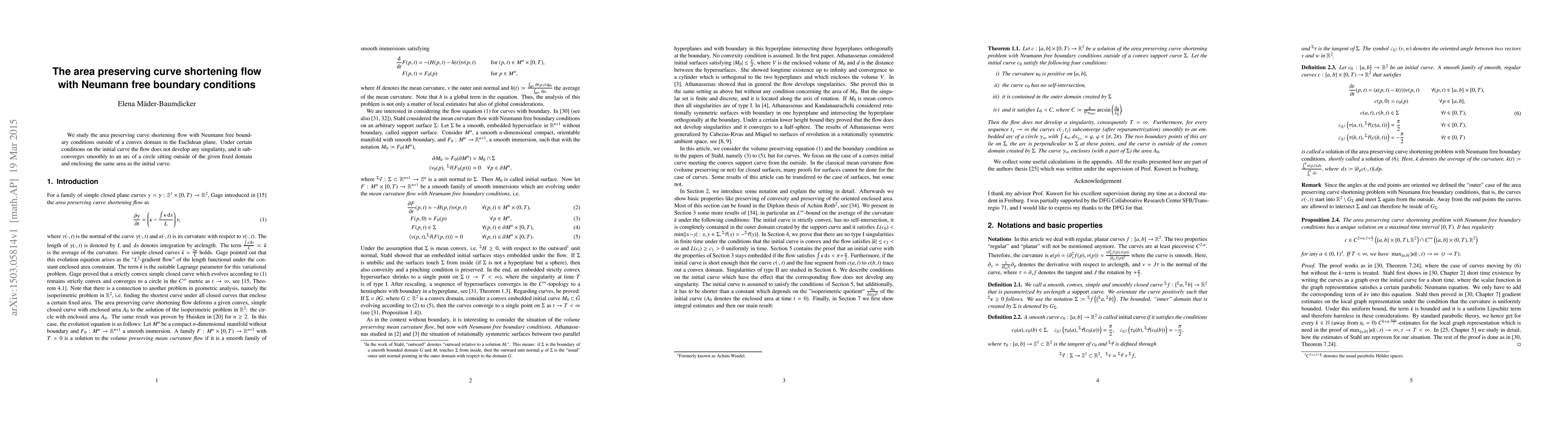 Summary: This paper investigates the area-preserving curve shortening flow with Neumann free boundary conditions, demonstrating that under specific initial conditions, the flow avoids singularities and converges smoothly to an arc of a circle outside the convex domain, maintaining the initial area.