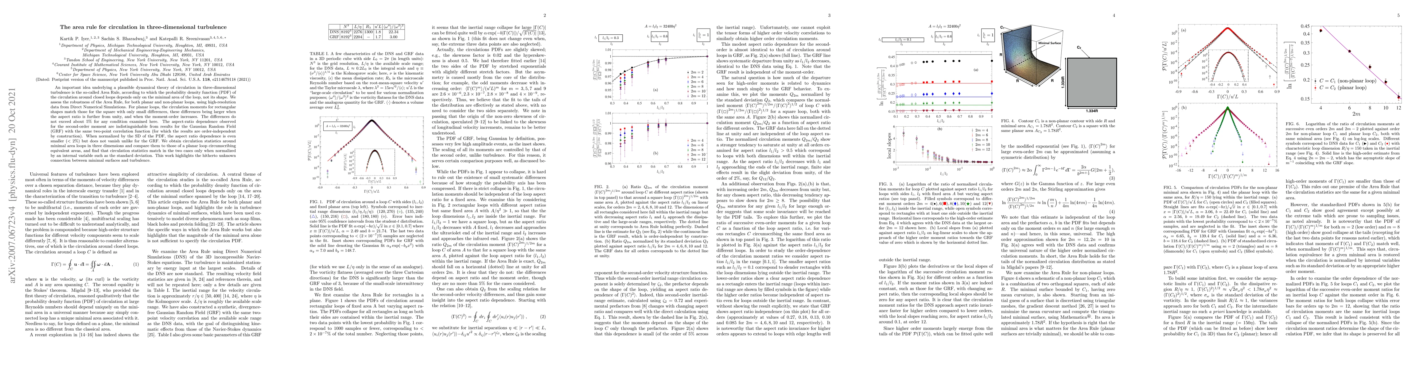 Researchers found that in three-dimensional turbulence, the probability density function of circulation around closed loops depends only on their minimal area, not shape, with small variations observed for non-planar shapes.
