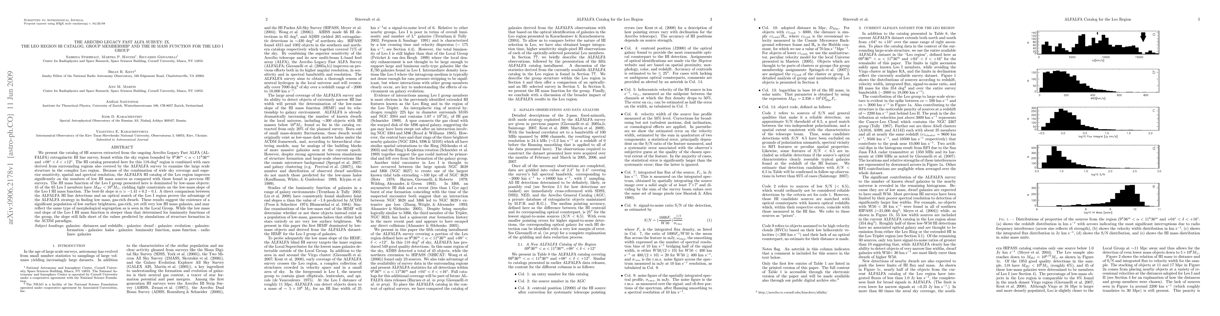 This paper presents an HI catalog from the ALFALFA survey for the Leo region, revealing a significant number of low-mass, gas-rich dwarf galaxies. The study finds a steep HI mass function slope for the Leo I group, indicating a substantial population of low surface brightness galaxies, which challenges predictions from LCDM simulations.