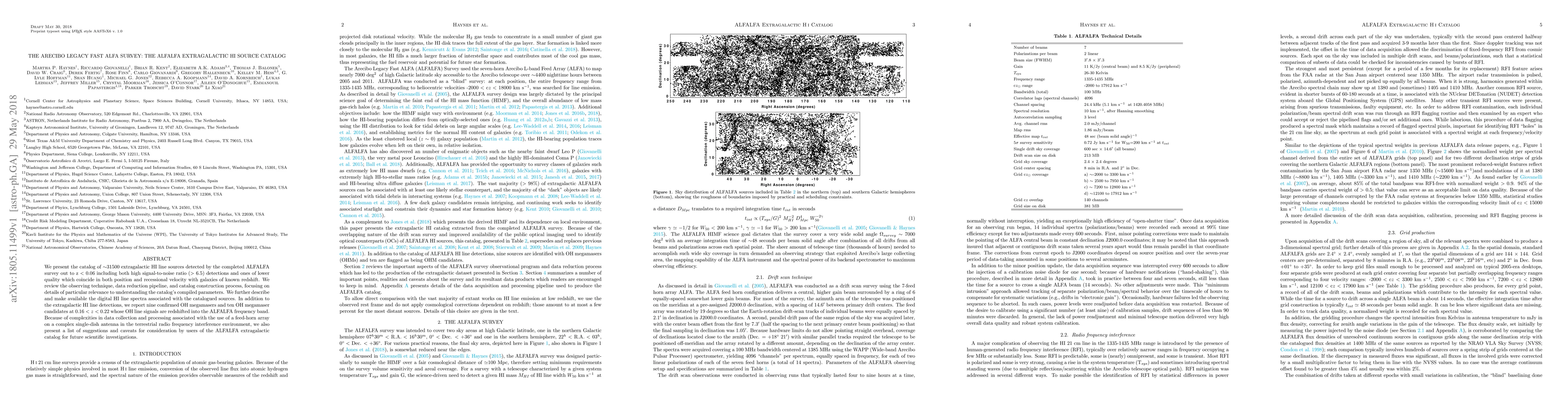 The ALFALFA survey presents a catalog of ~31,500 extragalactic HI line sources, detailing detections and data processing techniques, and includes nine confirmed OH megamasers and ten candidates. Users are advised on handling complexities in data collection and processing.