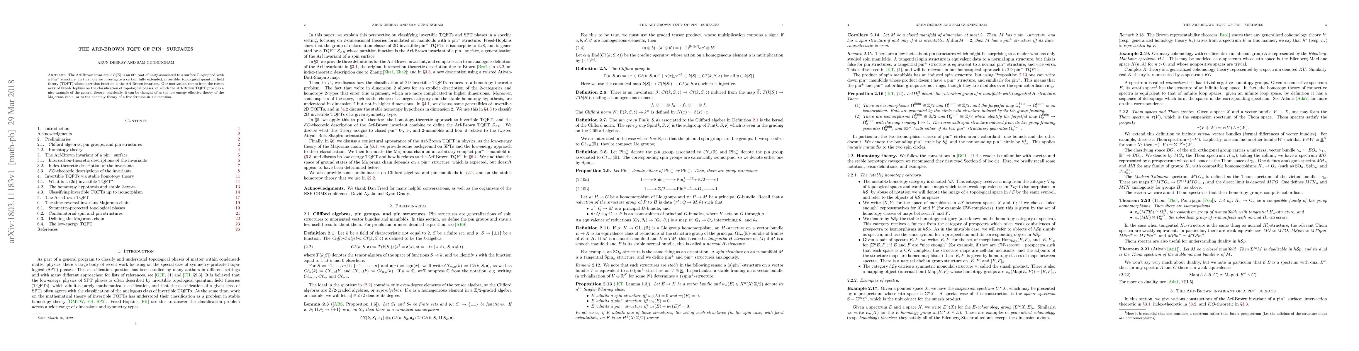 This paper explores the Arf-Brown TQFT associated with pin$^-$ surfaces, where the Arf-Brown invariant is the partition function. It serves as an example of the classification of topological phases, akin to the low-energy theory of Majorana chains or the anomaly theory for free fermions in one dimension.