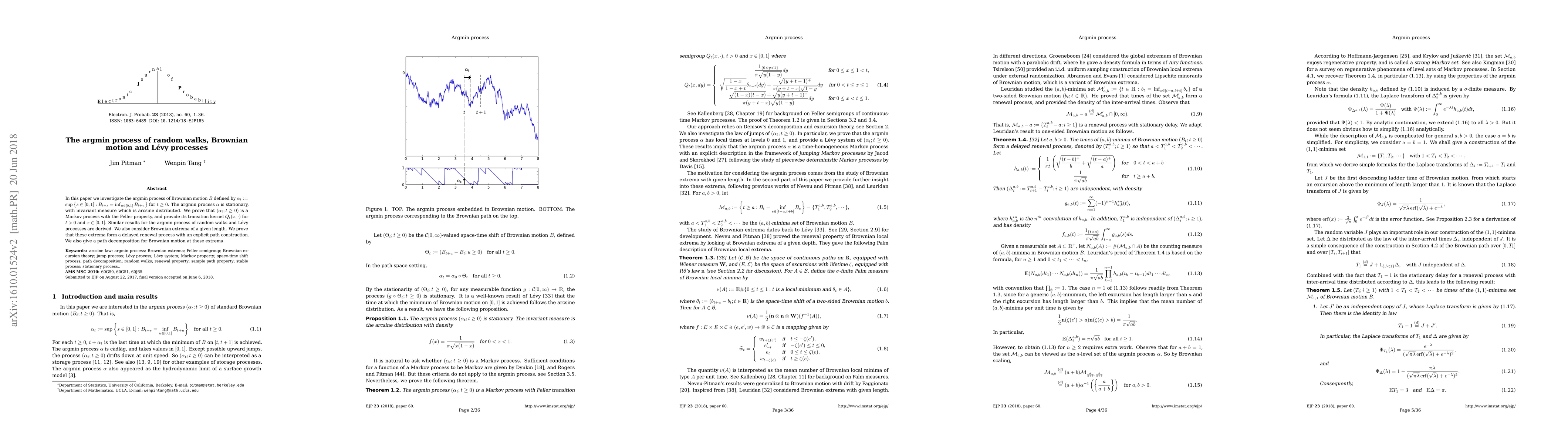 This paper studies the argmin process of Brownian motion, random walks, and Lévy processes, proving that the argmin process is a stationary Markov process with an arcsine distributed invariant measure. It also provides a transition kernel for the process and explores the structure of Brownian extrema.