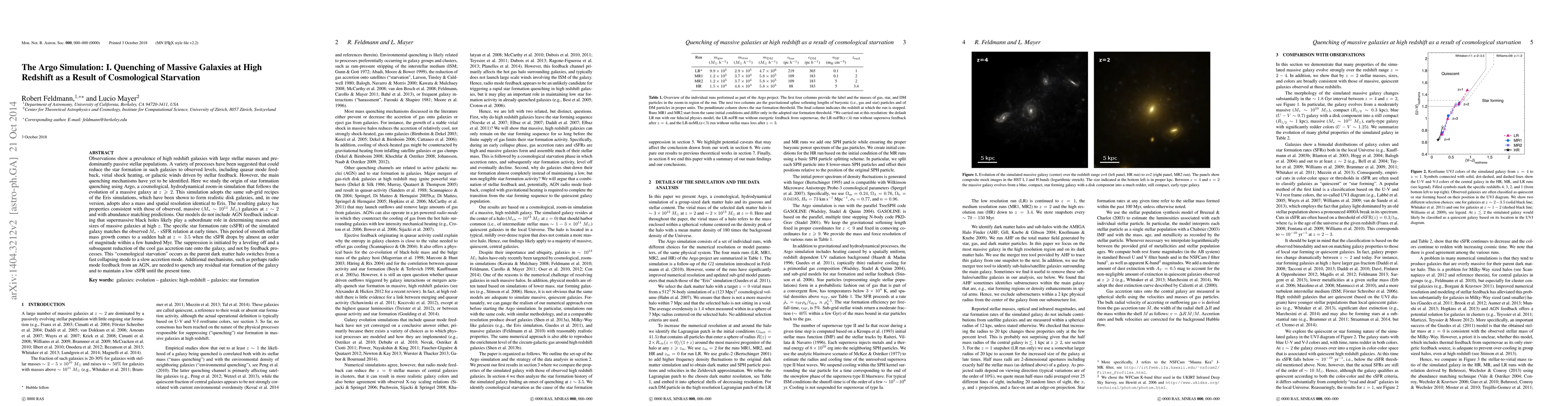 The Argo Simulation reveals that star formation quenching in massive galaxies at high redshift is primarily due to "cosmological starvation," where the reduction in cool gas accretion halts star formation, rather than feedback mechanisms like AGN activity. Additional processes may be required to fully suppress residual star formation.