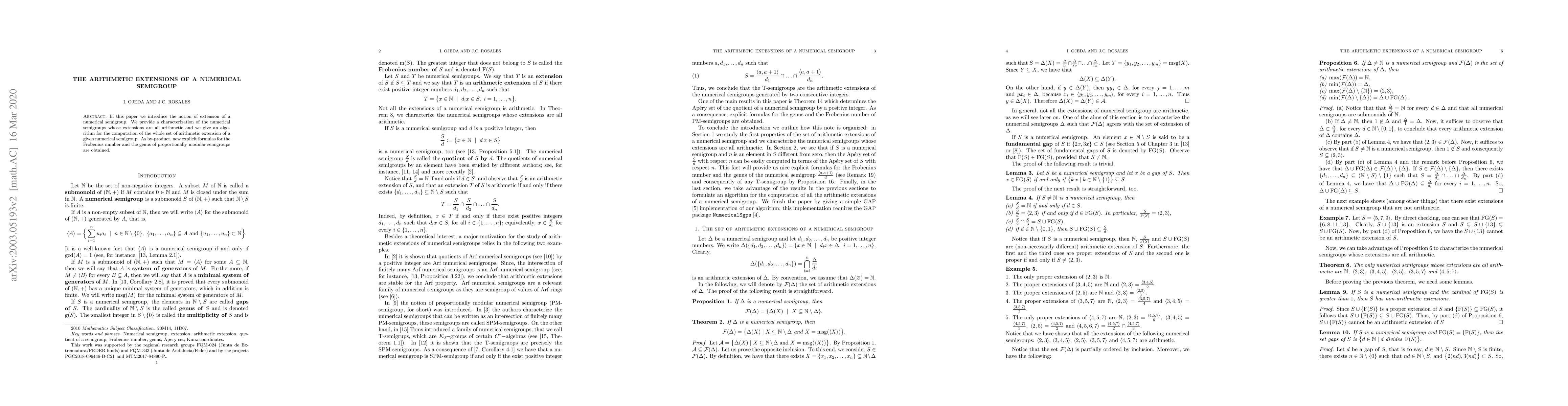 In this paper we introduce the notion of extension of a numerical semigroup. We provide a characterization of the numerical semigroups whose extensions are all arithmetic and we give an algorithm for the computation of the whole set of arithmetic extension of a given numerical semigroup. As by-product, new explicit formulas for the Frobenius number and the genus of proportionally modular semigroups are obtained.