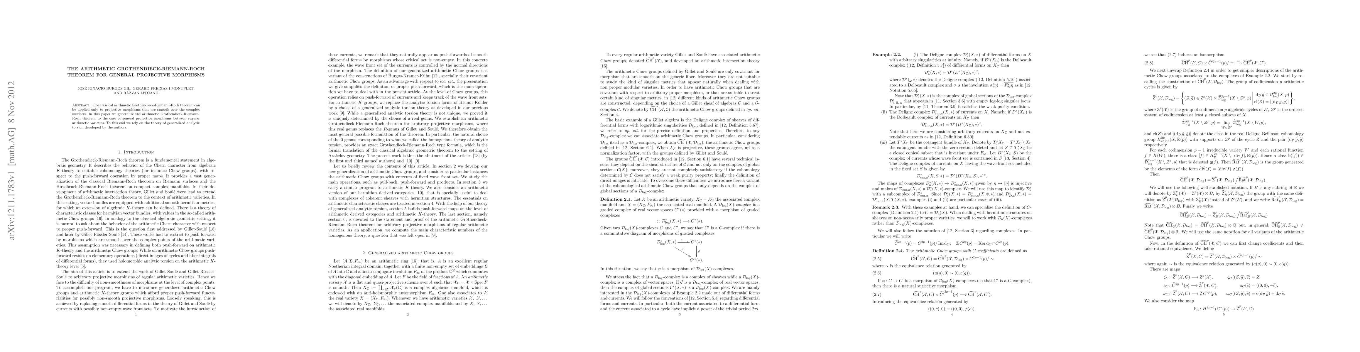 This paper extends the classical arithmetic Grothendieck-Riemann-Roch theorem to cover general projective morphisms over regular arithmetic varieties, utilizing the theory of generalized analytic torsion.